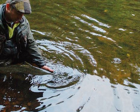 - After removing the hook from the fish's mouth, hold the fish with a grip around its tail, not with more force than necessary. Aim to keep the fish as loose as possible. Rest it against your other palm, placing it behind the pectoral fins and not directly under the abdomen. The fish must always be kept under the surface of the water, always point its head towards the direction of the current so that it can oxygenate itself. Let the fish take its time to recover and when it wants to swim on, release your grip on the tail.