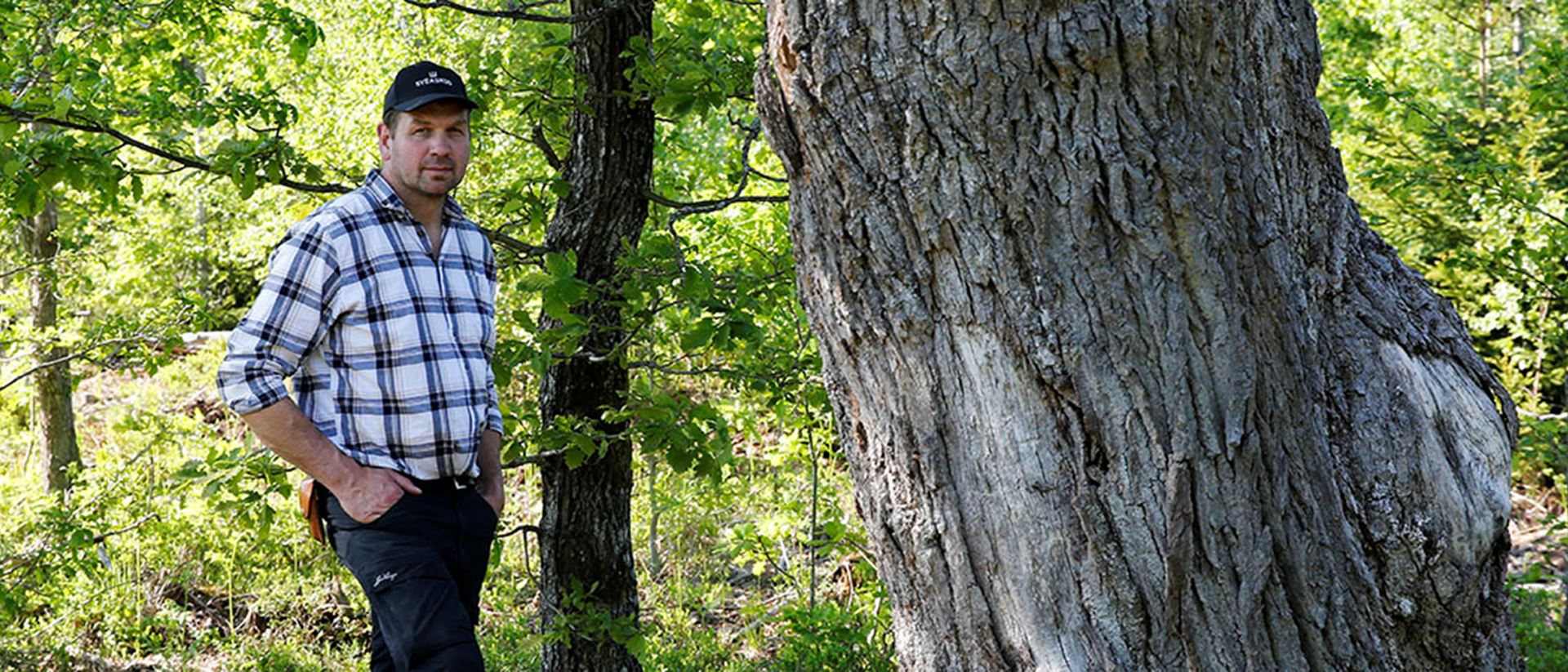 - Vi väljer att skada omkringliggande träd i olika omfattning för att skapa en naturlig förekomst av död ved i skogen, säger Jan Dahl, områdesansvarig på Sveaskog i Hornsö.