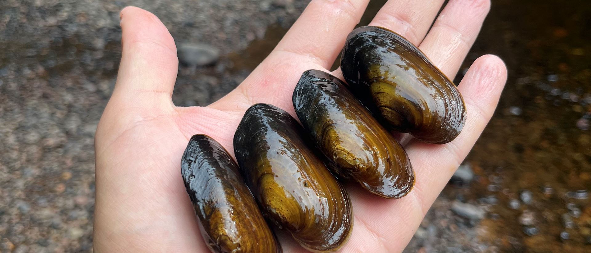 Små flodpärlmusslor från Lärjeån i Göteborg. Foto: Daniel Wendesten.