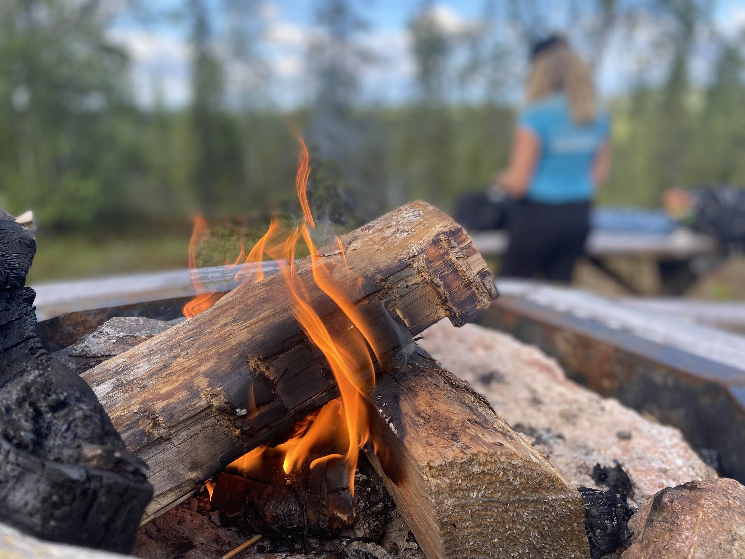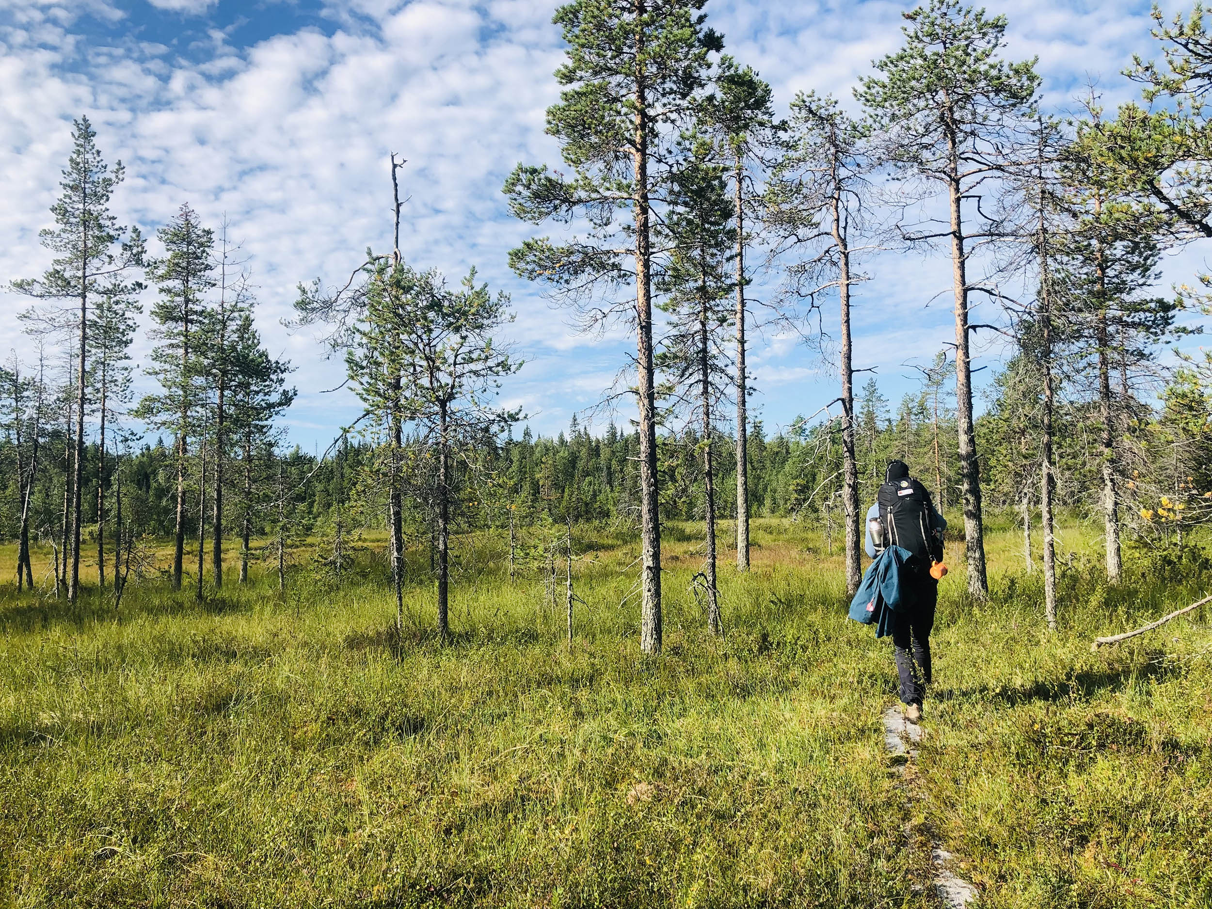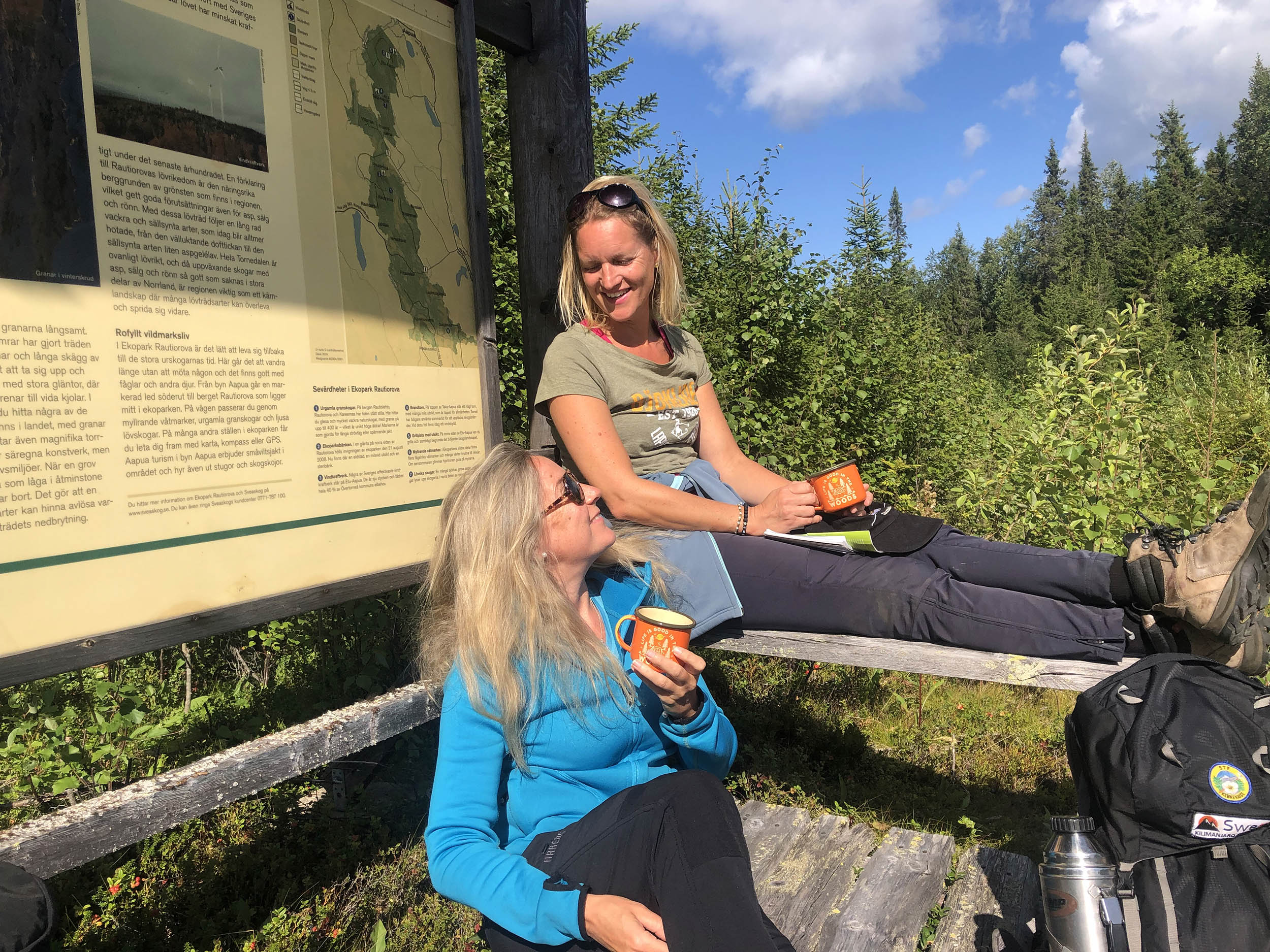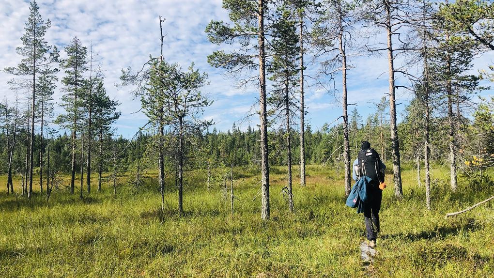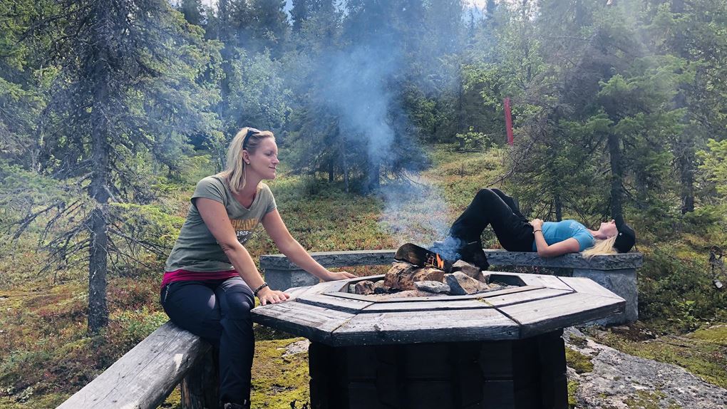 Vi beslöt att dela upp dagen i två delar. Först gick vi mot ekoparkbänken, där vi grillade oss en välförtjänt korvlunch och efterrätt i form av marshmallows. På vägen upp finns en kallkälla, som tur var är denna uppmärkt då det överlag är väldigt ont om vatten i parken. Efter lunch gick vi naturstigen runt Rautiorovas norra topp. Miljön i den här delen av parken upplevde vi som finare än kvällen innan, mer öppet och aningen mer lättgånget; skäggig urskog och miljarder blåbär.