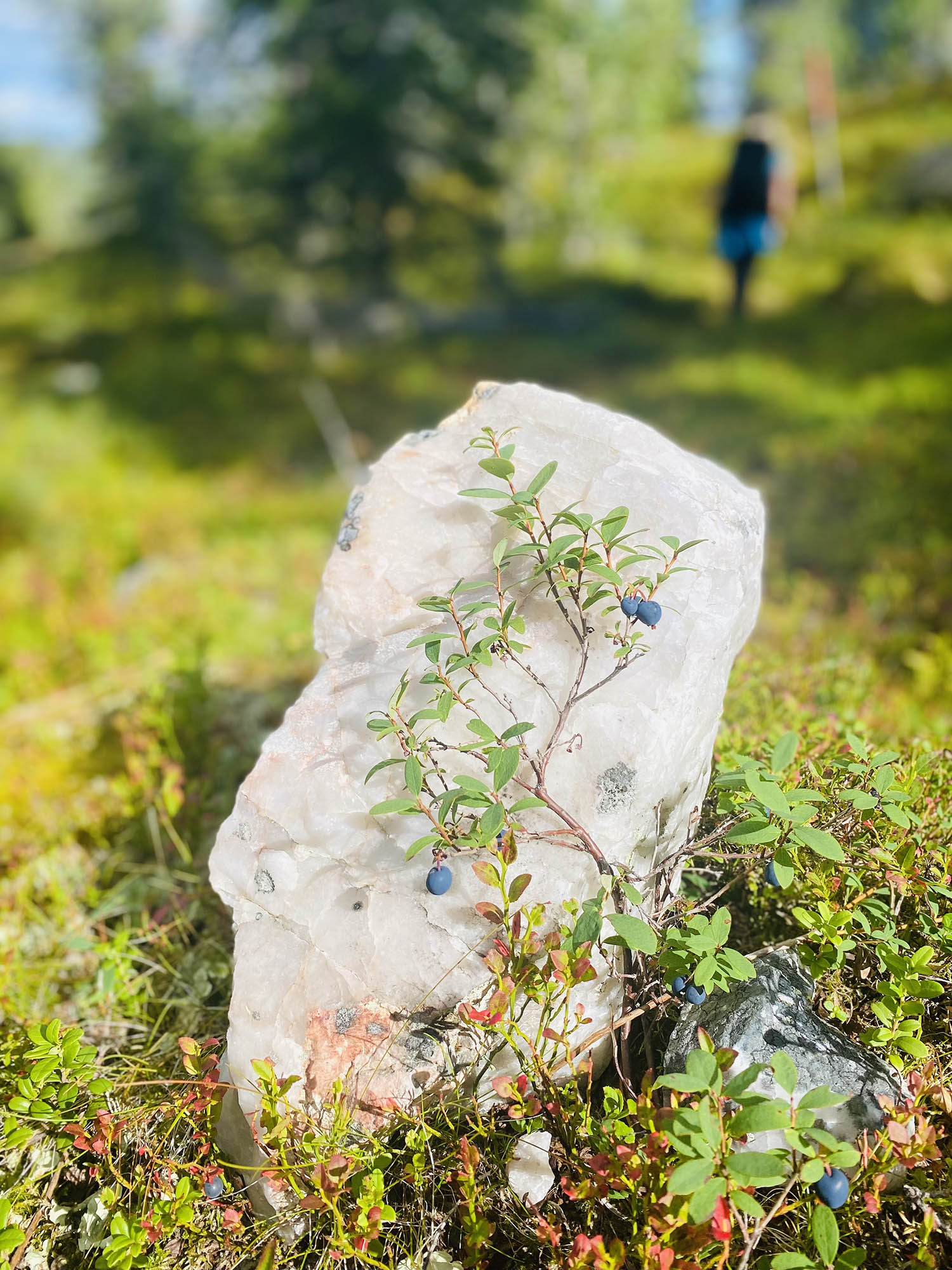 I den här delen av parken är det otroligt många lavar, både hänglavar och den fina lunglaven, som kännetecknar områden med bra luftkvalitet. Och till vår förtjusning blåbär, mer blåbär och ytterligare mer blåbär. Den grillplats som är utmärkt som ”grillplats med utsikt” på norra sidan av Etu-Aapua var mestadels igenväxt och erbjöd inte den häpnadsväckande utsikten vi hoppats på.