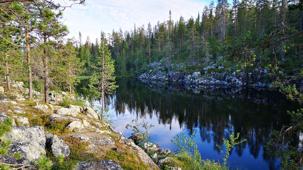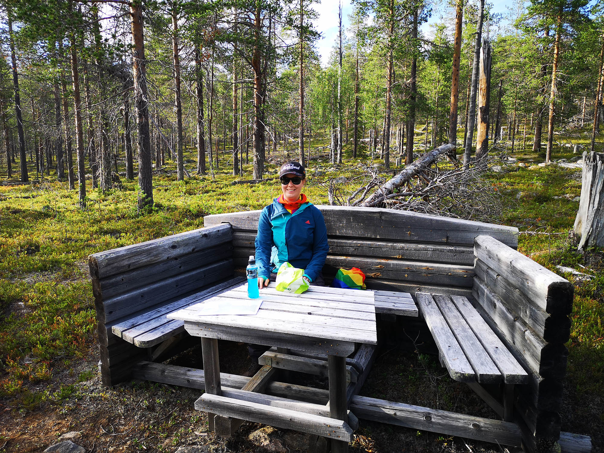 Lompolo var nog en av våra favoriter längs vandringen, och vi önskade att vi haft med kanoten för att utforska Kihlankikursu från nära håll. Vi hittade en kallkälla där vi kunde släcka törsten innan vi fortsatte vidare. Vädret var väldigt fint och vi blev positivt överraskade av att det fanns mycket färre mygg än vad vi trodde.