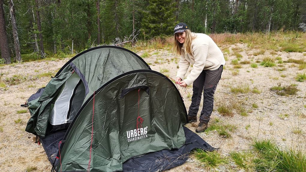 Att slå upp tältet gick smidigare än vi trodde med tanke på att det var första gången. Vi avnjöt kvällsmaten under nattsolen innan vi kröp ner i våra sovsäckar. Natten var tyst och ljus och vi båda sov gott och ganska länge. Det regnade lite på morgonen, men i tältet var det mysigt. När vi vaknat och öppnade tältet såg vi till vår förvåning en liten ren som säkert undrade vad vi gjorde där ute.