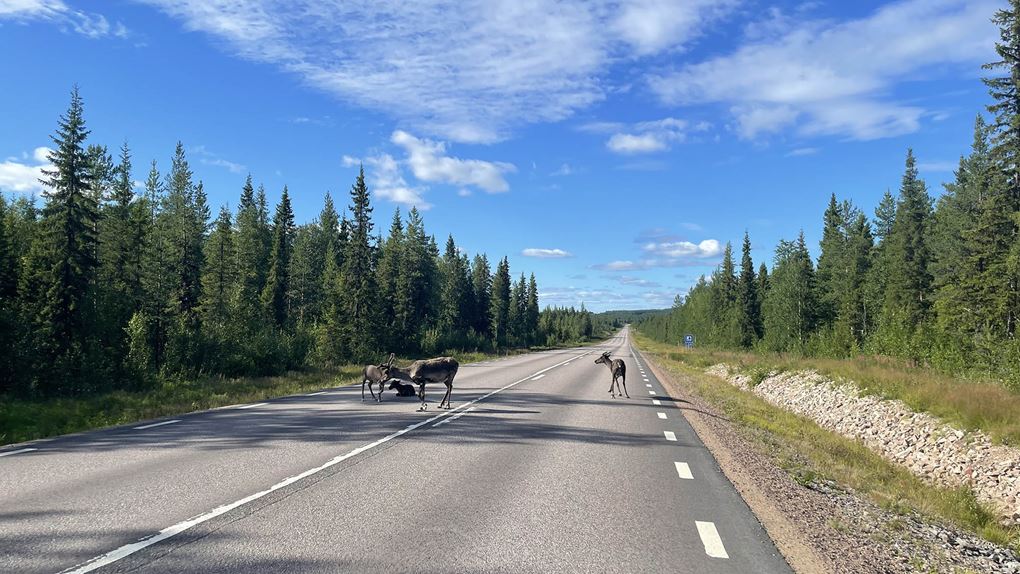 Vi körde vår bil och utrustning i cirka 5 kilometer till slutpunkten, där vi tänkte avsluta vår båtfärd och promenerade med raska steg tillbaka dit vi lämnade kanoten. Under promenaden träffade vi på några renar, annars var det väldigt lugnt i parken.