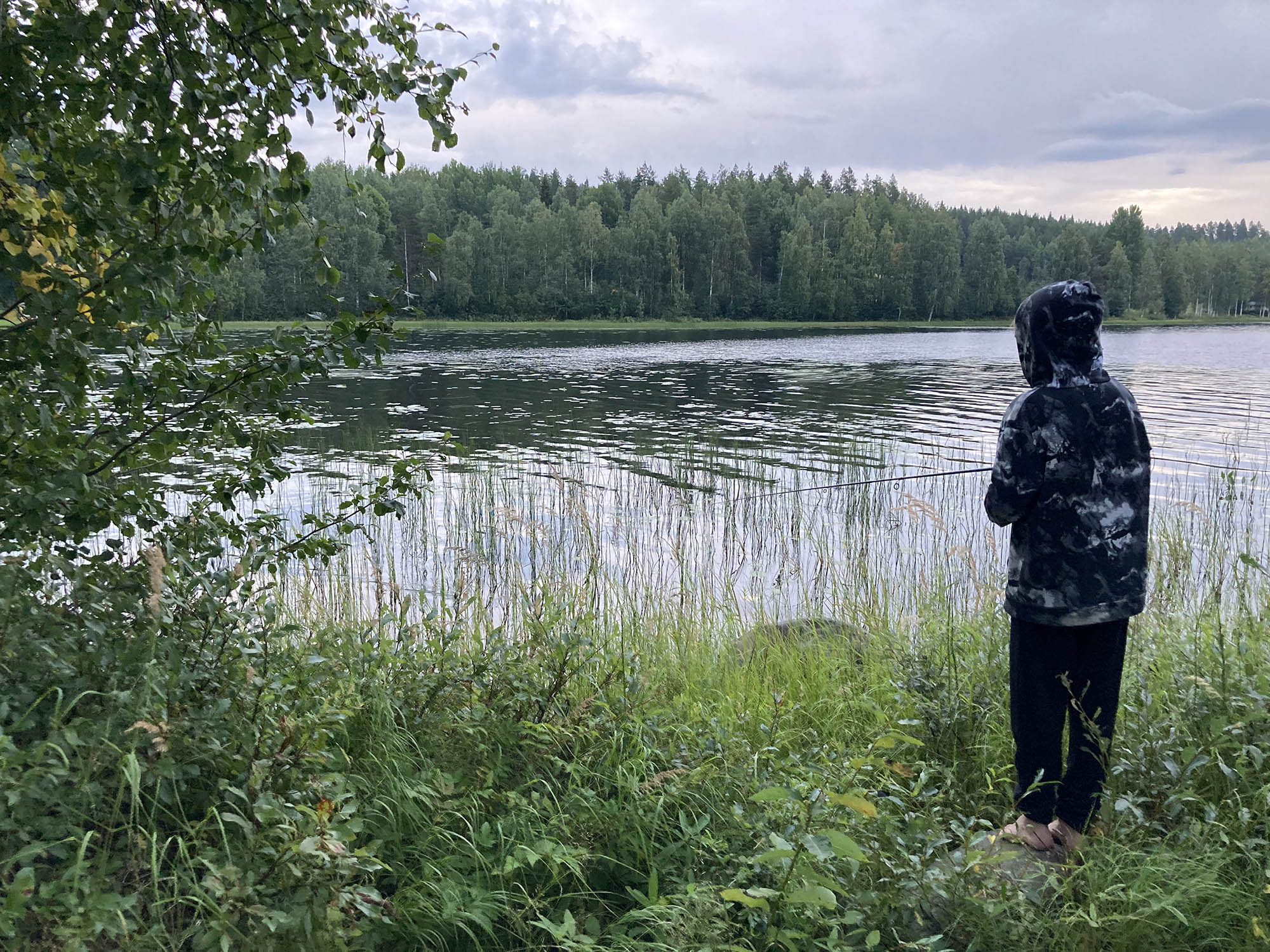 Regnet visade sig tack och lov vara snabbt övergående och på toppen åker regnkläderna av. Vi gör ett kortare stopp vid Abborrtjärnen för energipåfyllning och lite fiske. Här fanns en fin rastplats och stigen längs vattnet var mysig.