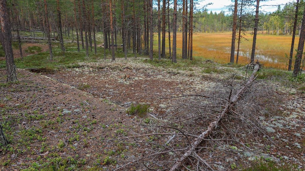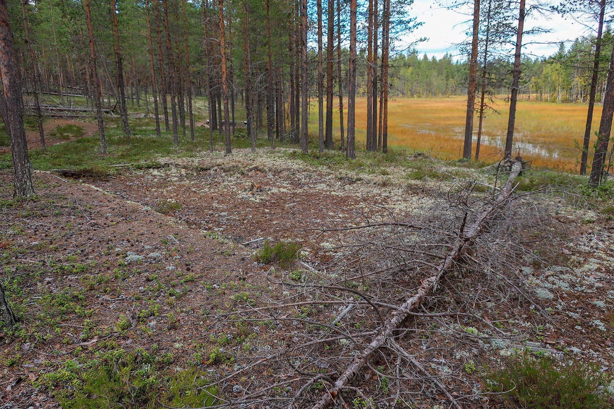 Det var inte helt enkelt att hitta till boplatslämningen och det håll vi kom från ingick inte i någon skyltad led. Men med hjälp av utskrivna kartor och appen Naturkartan hittade vi rätt. Vi var förberedda på att utgrävningsplatsen skulle vara förfallen. Sophie har tidigare arbetat på Norrbottens museum och hon hade haft kontakt med arkeologerna för att höra lite mer om platsen och lämningarna. De berättade att för några år sedan drog en storm fram genom området och den fällde många träd som nu delvis döljer lämningar eller ligger över stigarna. Lederna verkar inte har skötts om i någon större utsträckning sedan museet Vuollerim 6000 år stängde 2018.