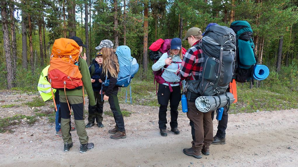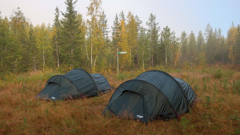 Väskorna var packade med tält, sovsäckar, mat, gaskök, ombyten och andra förnödenheter. Tunga väskor åt oss vuxna och lättare packning åt barnen. Vattenflaskorna fylldes och vi gjorde smörgåsar att ha som med lunch och mellanmål den första dagen. Väderprognosen såg mycket lovande ut, soligt och omkring +15 grader. Det kändes nästan lite för lovande med tanke på att hösten i Norrbotten kan bjuda på såväl regn och storm som soliga vackra dagar. Vi hoppades att väderleken skulle stämma. Vis av erfarenhet vet vi att det är svårt att hålla humöret upp på hela gänget om regnet öser ner och naturligtvis var skalkläderna nerpackade.