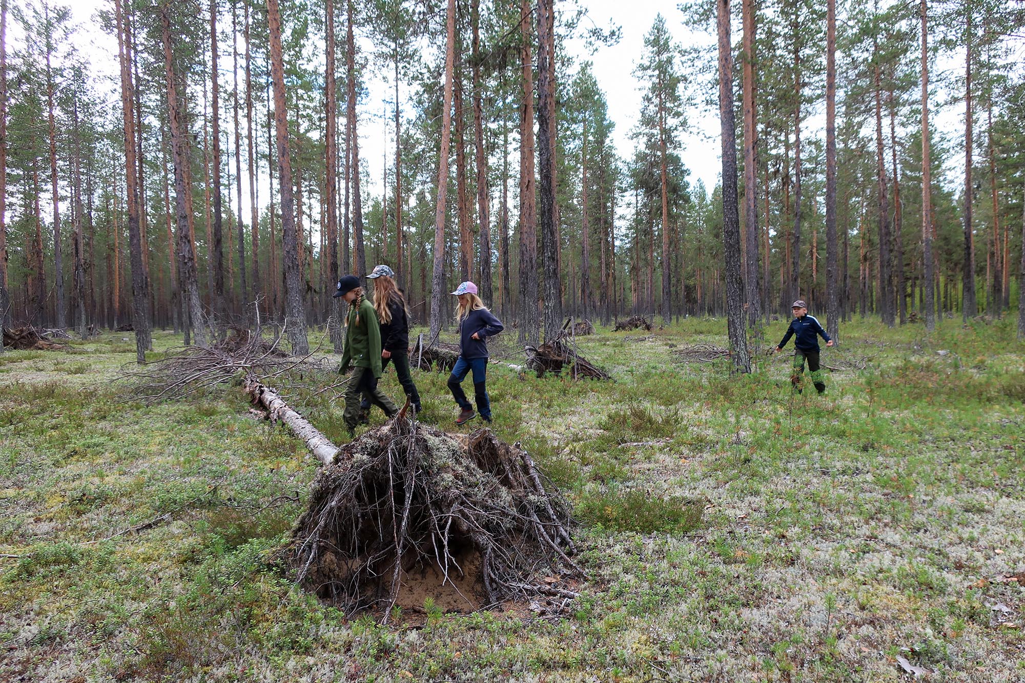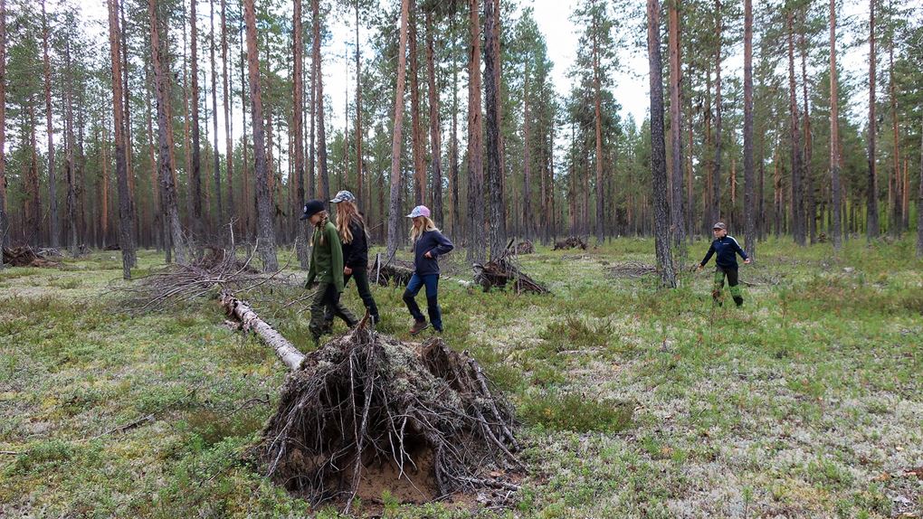 Följ med när familjerna Forsell och Nyblom/Lindström vandrar i Ekopark Vuollerim. Hittar de några fornlämningar? Och hur går det egentligen med knotten?