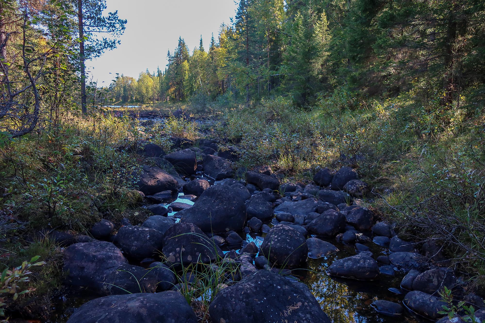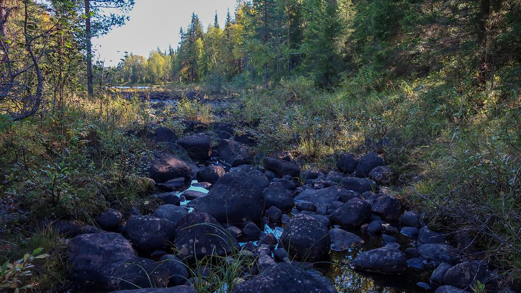 Att hitta en lämplig helg var lättare sagt än gjort och vi ville undvika sommaren och myggsäsongen. Därför gjorde vi vår vandring i början av september och planen var att gå två dagar och övernatta i tält. Vi tittade på kartorna och skissade upp en rutt, pratade sedan med Lars-Göran på Sveaskog för att få lite tips om var det fanns vatten, var det var bäst att tälta och så vidare. Vi reviderade vår planering efter samtalet så det var bra att ha någon att bolla idéer med. Vi tänkte utgå från spegeldammen och först följa parkens södra sida, sedan snedda igenom och nå Padjerimberget, som egentligen inte ligger i ekoparken, och tälta någonstans däromkring. Den andra dagen skulle vi gå tillbaka och börja med Kainoberget och därefter gå genom den nordöstliga delen av parken för att komma tillbaka till spegeldammen. Det var vår plan.