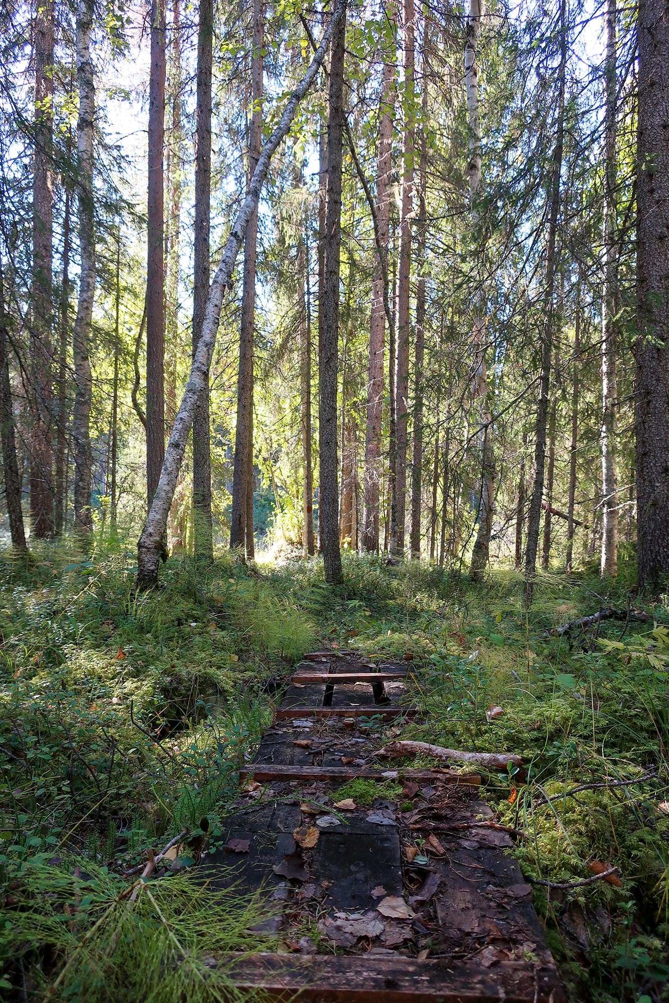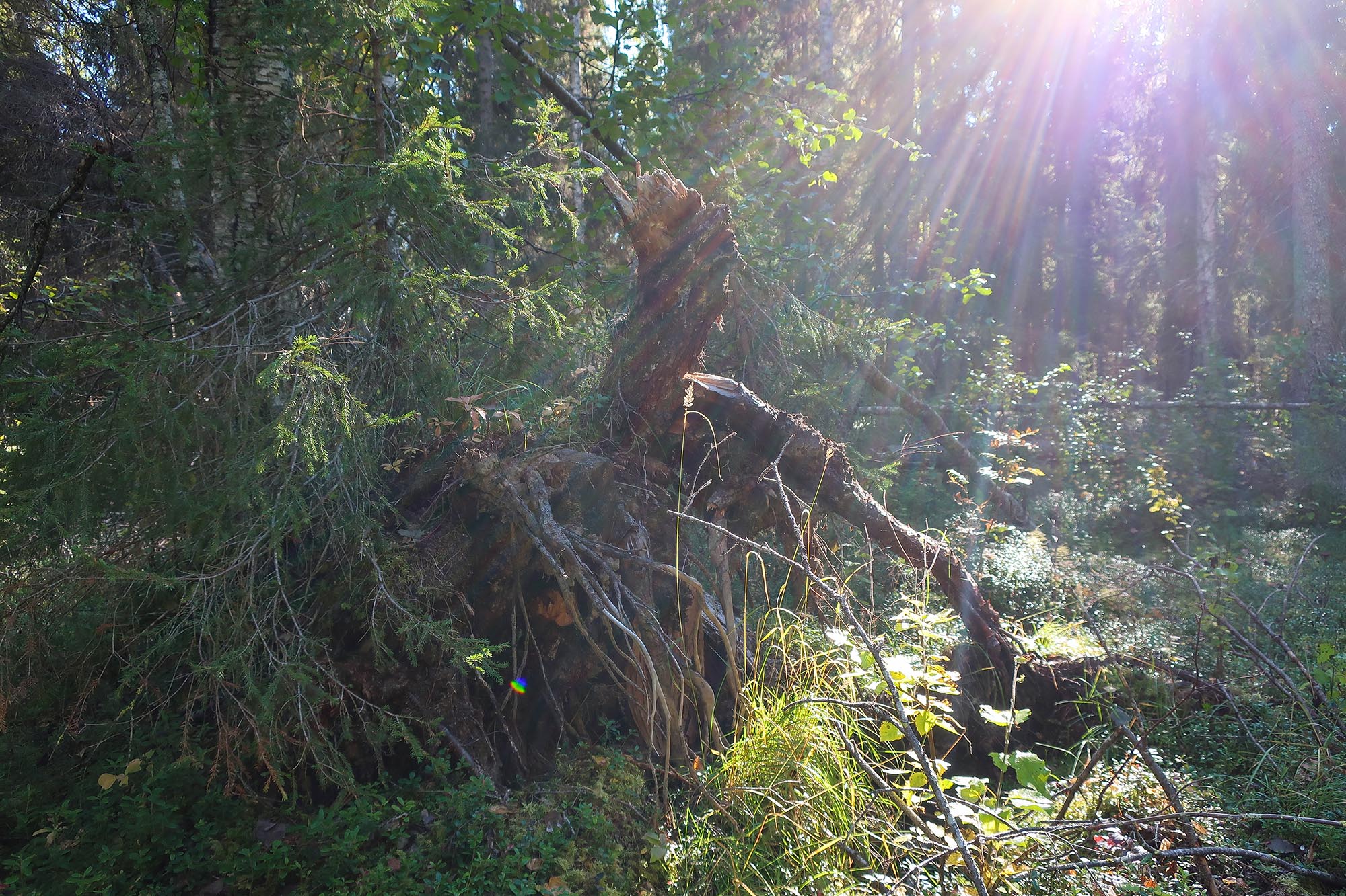 Kanske var det att vi höll utkik efter alla dessa tecken som gjorde att det var svårt att få känslan av att vara i orörd skog. När man är ute på fjällen känner man ofta att man är långt borta från bebyggelsen och civilisationen. Den känslan var svårare att hitta i Vuollerims ekopark och det faktum att vi hade bilarna bredvid tältet bidrog säkert till det. Å andra sidan är det också en sak som gör parken tillgänglig för fler. Kanske kan du av någon anledning inte kan vandra längre sträckor t.ex. med yngre barn och att då kunna nyttja de skogsvägar som finns för att komma djupare in i parken kan bidra till att fler kan besöka t.ex. Kainoberget.