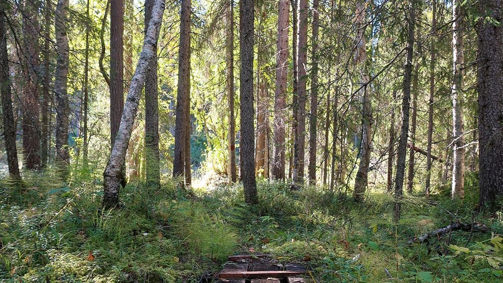 Gamla granar och tallar, asp, björk och sly. Trollska gammelskogar, tallheden och myrmarker. Blommorna hade sedan länge vissnat men ersatts av bär; stora saftiga blåbär och klarröda lingon. Vi såg nog det mesta som platsen har att erbjuda i den del av parken vi vistades. Nu gick vi aldrig direkt igenom tallheden som vi tänkt men vid sidan av den. De platser som erbjöd starkast känsla av orörd skog var områdena kring bäcken och nere längs stigen till stenbänken. Där var det lummigt och kändes som att naturen höll på att ta över, växterna höll på att utplåna stigar och andra tecken på mänsklig närvaro.