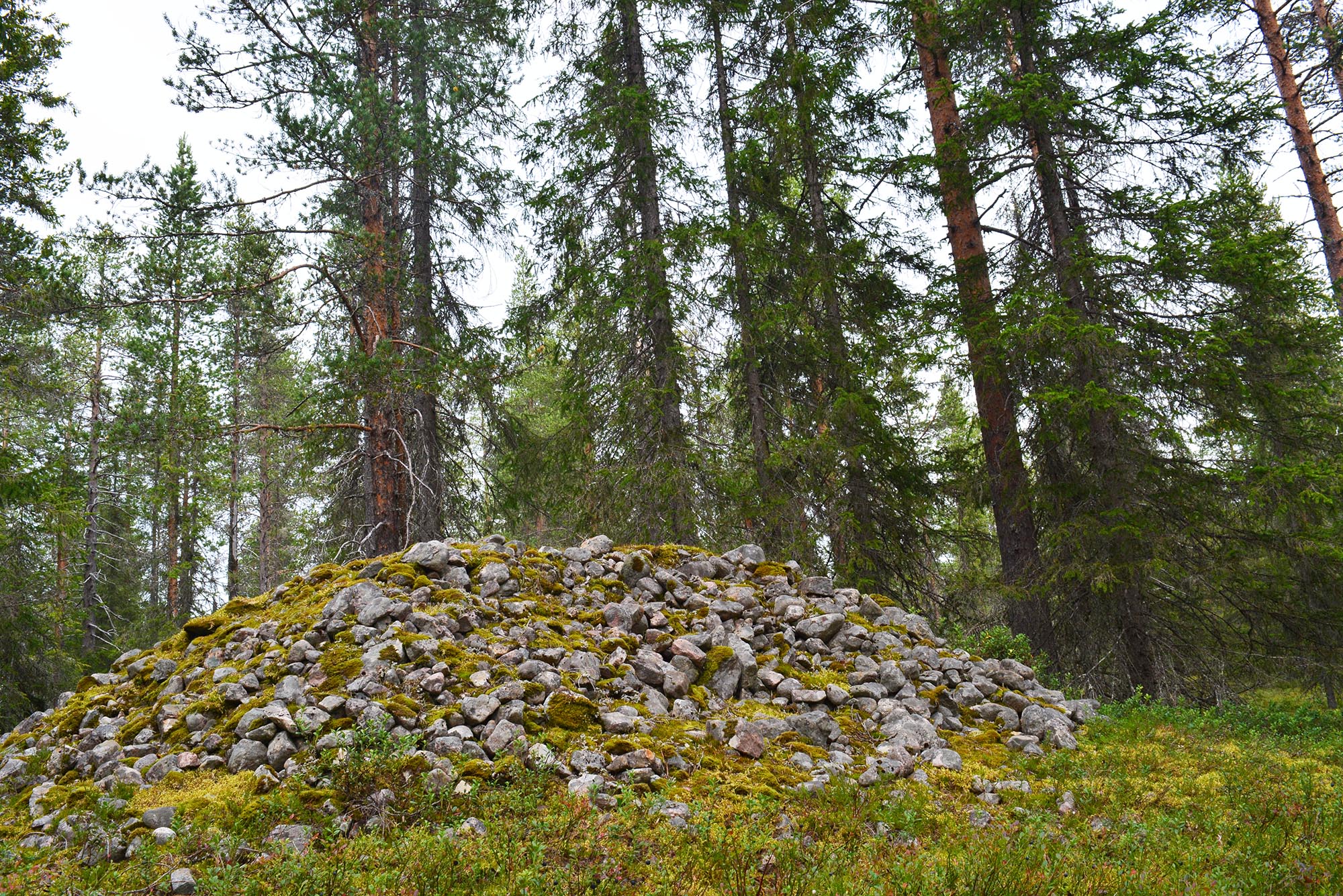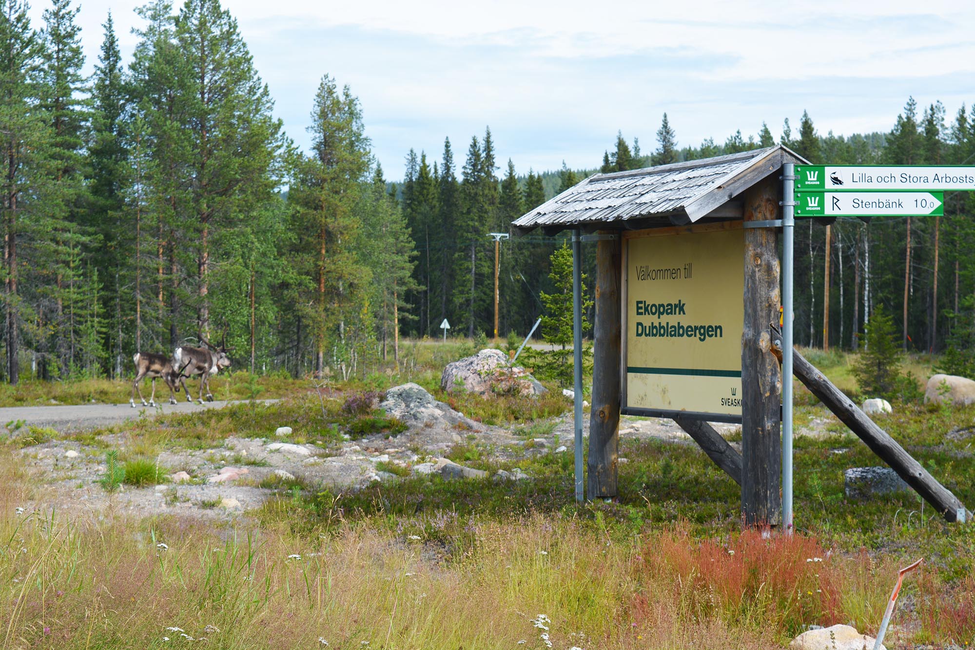 Tämligen trötta väl framme i Dubblabergen omslöts vi av mörker och en tystnad som ackompanjerades av Åbyälvens forsande vatten. När vi tidigt nästa morgon gav oss iväg välkomnades vi av klingandet och klapprandet från en renhjord. En av renarna som betraktade oss från andra sidan vägen lyste med sin snövita päls. Enligt samisk kultur kommer den vita renen med ett budskap av något slag, så detta var en spännande start på vår vandring i Dubblabergen. Vi gick vidare in i skogen och fick känna historiens vingslag där vi gick mellan fångstgropar och stenrösen. Traskandes över en tallhed funderade vi över vilka som ursprungligen trampat upp dessa stigar, vilka som levt i torpen, vad de tänkt och känt.