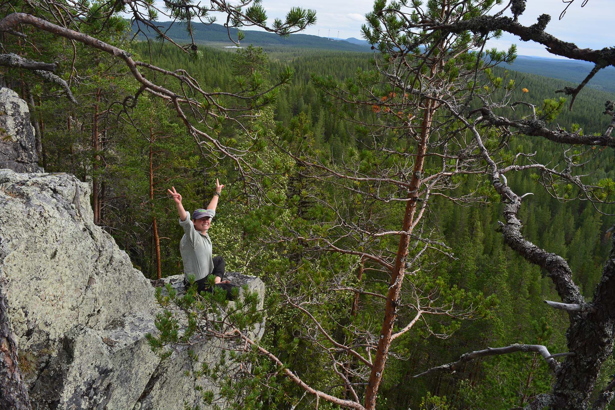 På Flyggbergets topp med utsikt och bär i magen, var vi som absolut gladast den dagen. Vi vill dock varna att det finns återfallsrisk för maniska bärplockare då Salima med jämna mellanrum fick dra ut sin vän från hjortronförklädda myrar. Det är lätt att fastna i träsket.