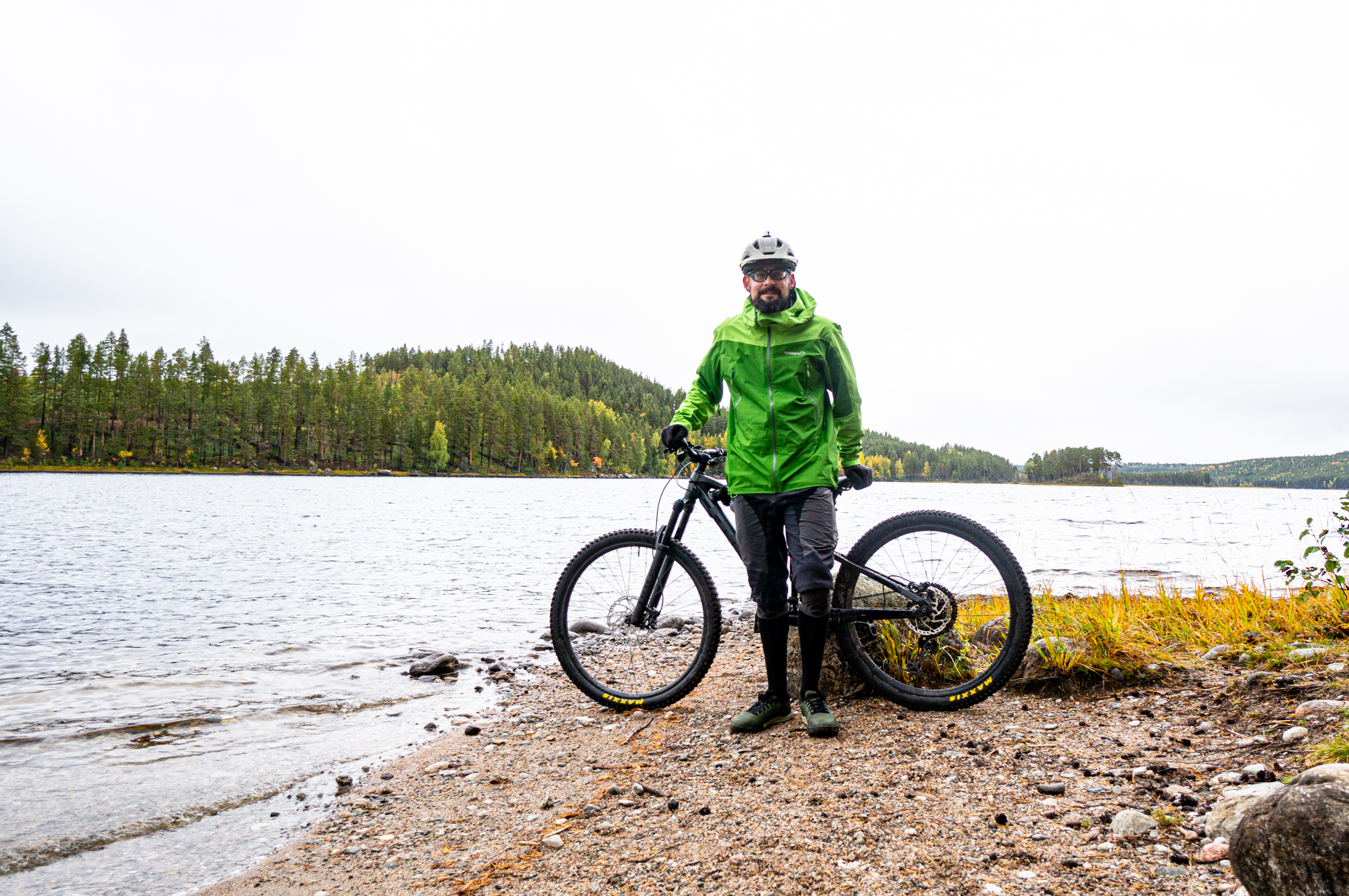 Precis när jag kommit fram till vindskyddet vid Långtjärnen och Östersjön börjad det blåsa upp och ett lättare regn drog in. Jag passade på att pausa innan jag cyklade vidare upp på Isälvsleden mot Sundkammen. Den här sträckan visade sig vara MTB-cykling i toppklass.