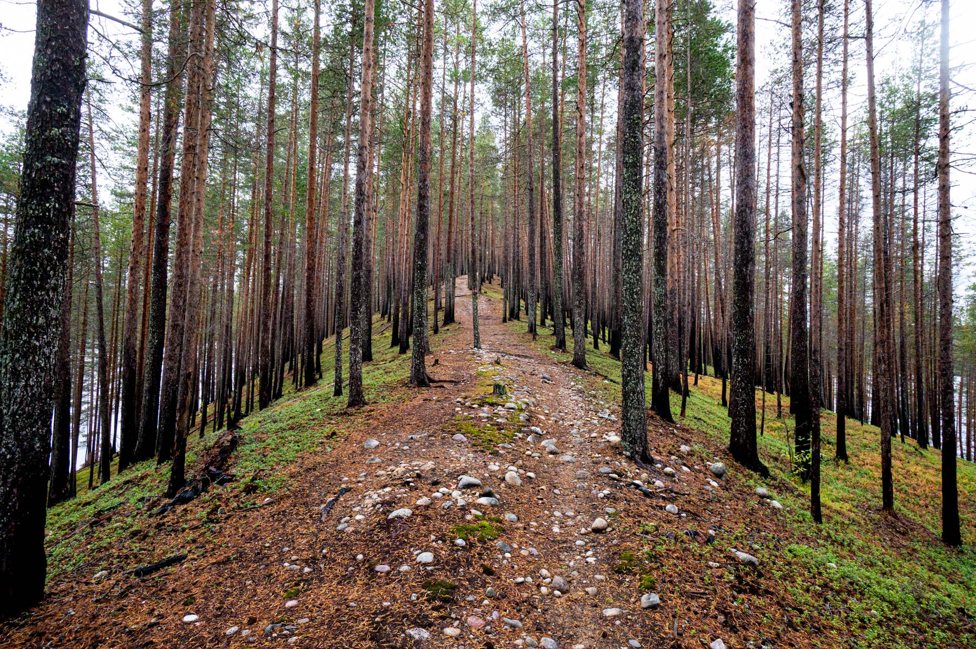 Området på Sundkammen har utsatts för brand och resultat såg dramatiskt ut med tallarnas svarta bark och de förkolnade trädstammar som låg i blåbärs- och lingonriset, känslan förstärktes av storlommens melankoliska läte. Jag stannade till vid slutet på Sundkammen, där låg den båt förtöjd som möjliggör en fortsättning på leden mot Åmsele. Jag valde dock att vända tillbaka och cyklade sedan mot Mörtberget.