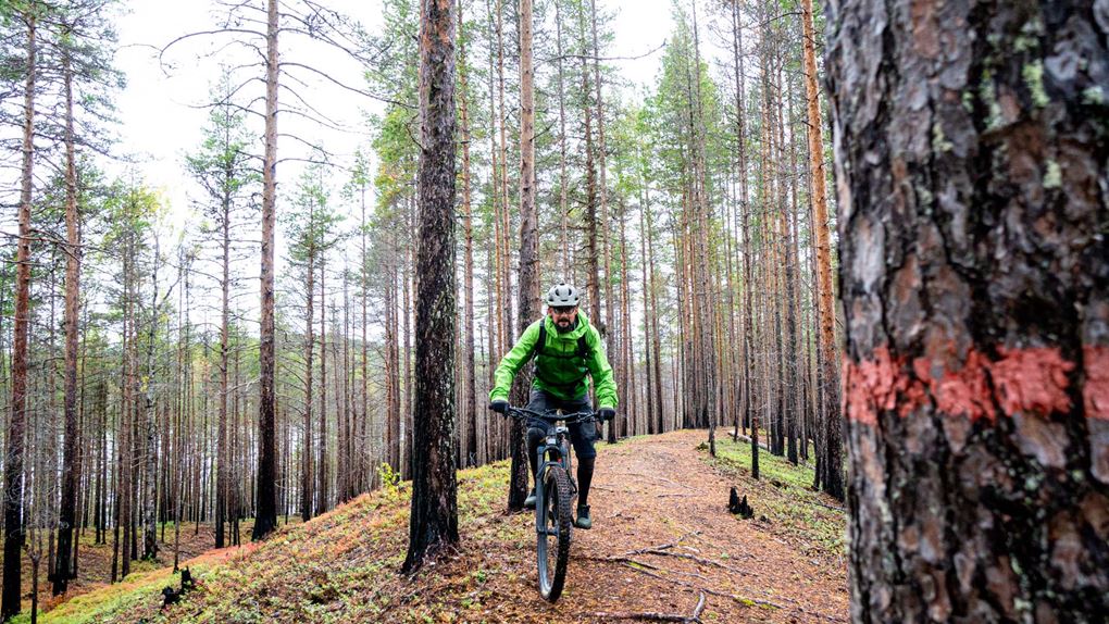 Följ med när Henrik Gistvall cyklar mountainbike genom Ekopark Skatan. Vad tycker han om lederna? Och hur går det med höstregnet?