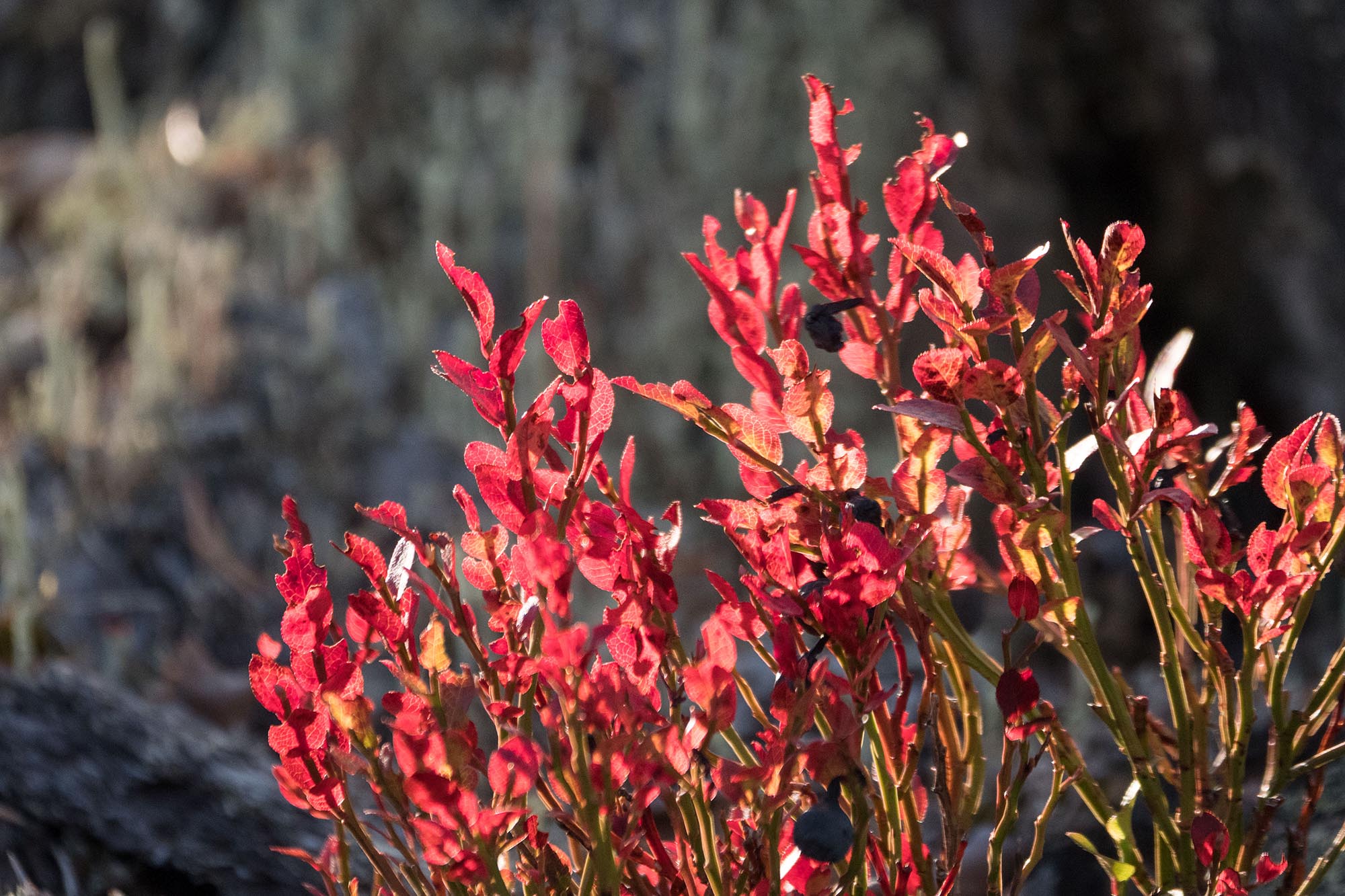 Vandringen i den obanad ödemarksterrängen går i maklig takt. Ibland är det snårigt, ibland sankt, ibland brant. Men det är vackert. Mattorna av ris skiftar i gult och orange. Solen gör några kortare gästspel. Myrarna doftar mättat av - ja är det skvattram, eller pors? Kanske en blandning.