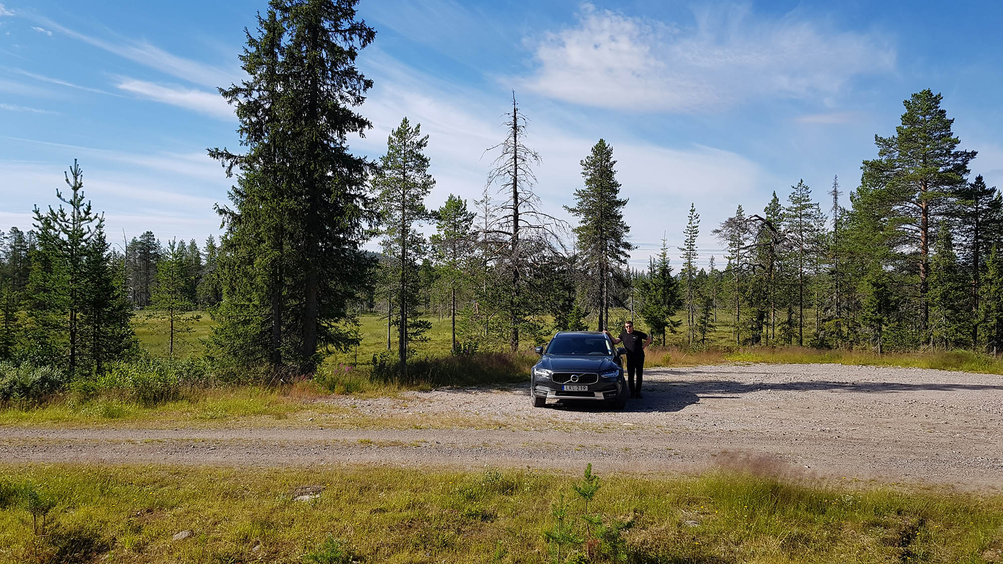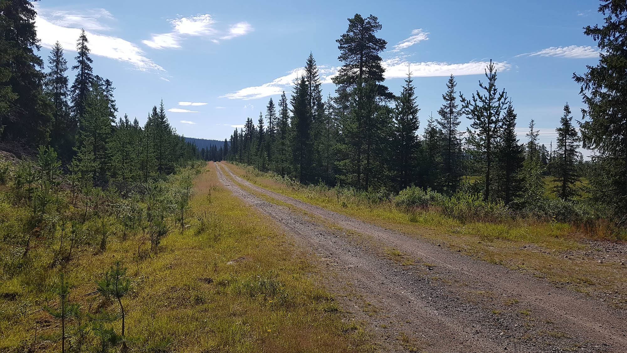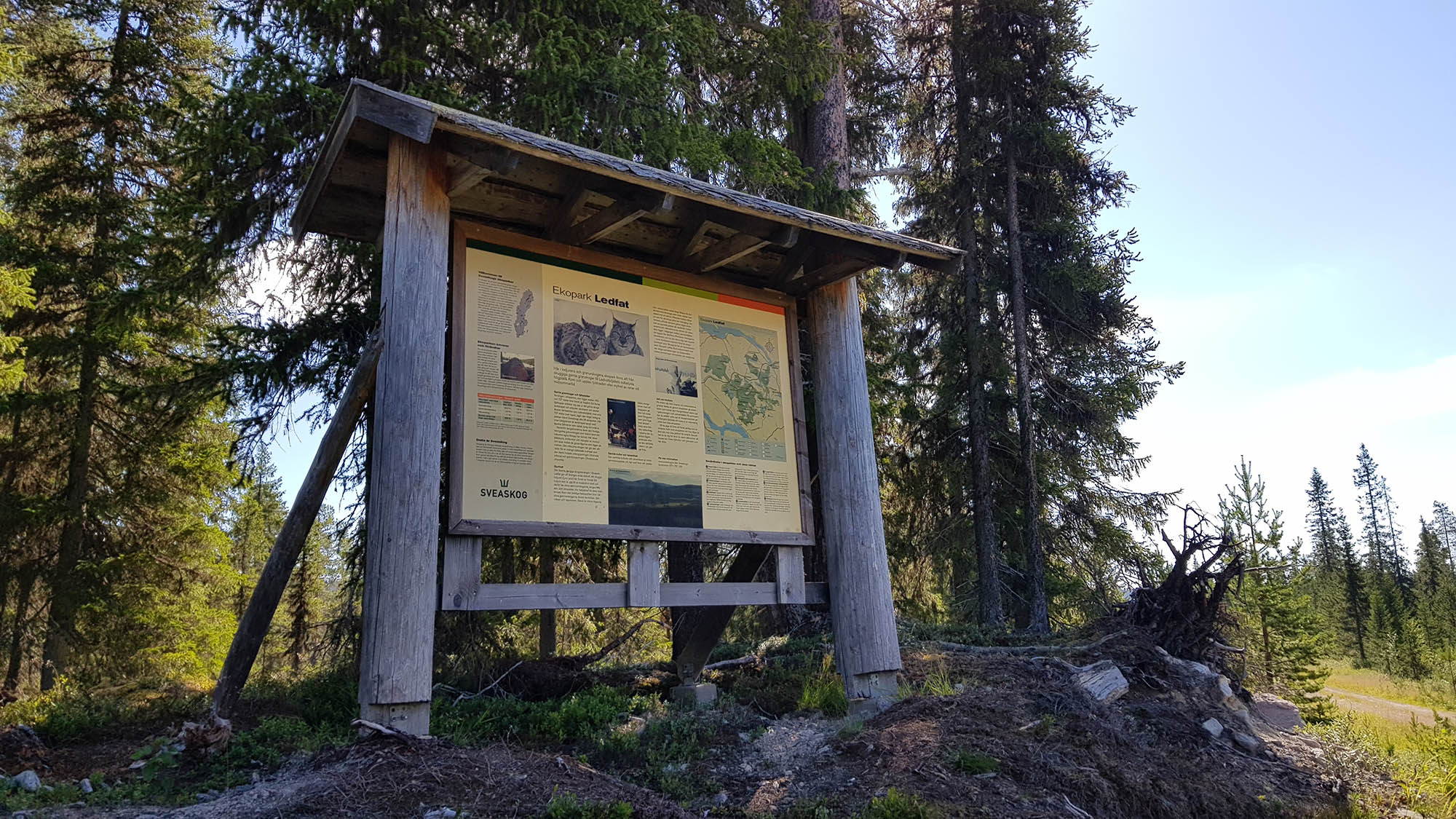 Vi började vårt äventyr vid informationstavlan intill E45:an mellan Arvidsjaur och Slagnäs. Den lilla parkeringen var lätt att hitta och vägen in i Ekoparken var en torr och fin grusväg. Målet var att med cykel och till fots ta sig upp på Sotberget och få ta del av den härliga utsikten och uppleva en fjällhed.
