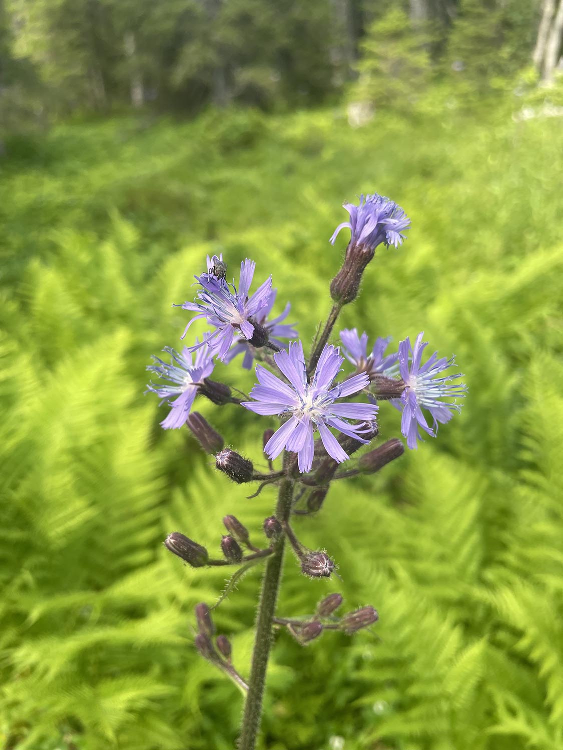 Första stoppet blev vid en mysig stuga med utebastu intill en liten bäck. Vid bäcken fascinerades vi av vad vi då trodde var någon slags fjäril men som efter lite efterforskning efter hemkomsten visade sig vara en blå jungfruslända.