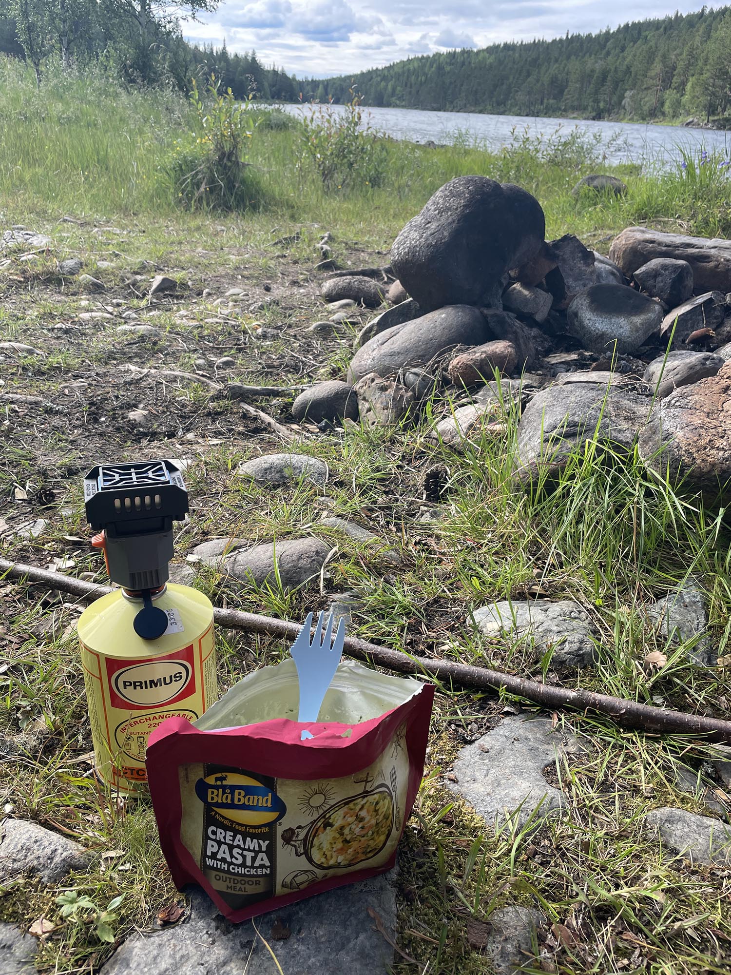 Innan Benbryteforsen tar jag upp inne i ett sidoflöde till själva forsen. Den forsen hör man redan på namnet att det är bra att inte paddla den osedd. Allt går bra och jag hinner gott och väl få i mig ett mål varm mat innan jag återigen somnar i min hängmatta både glad och nöjd över dagens strapats.
