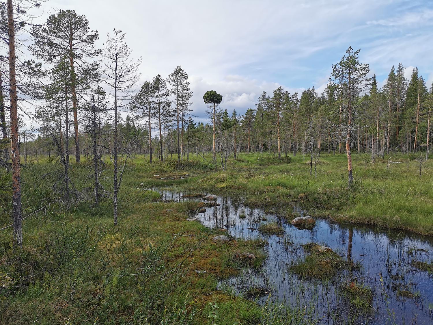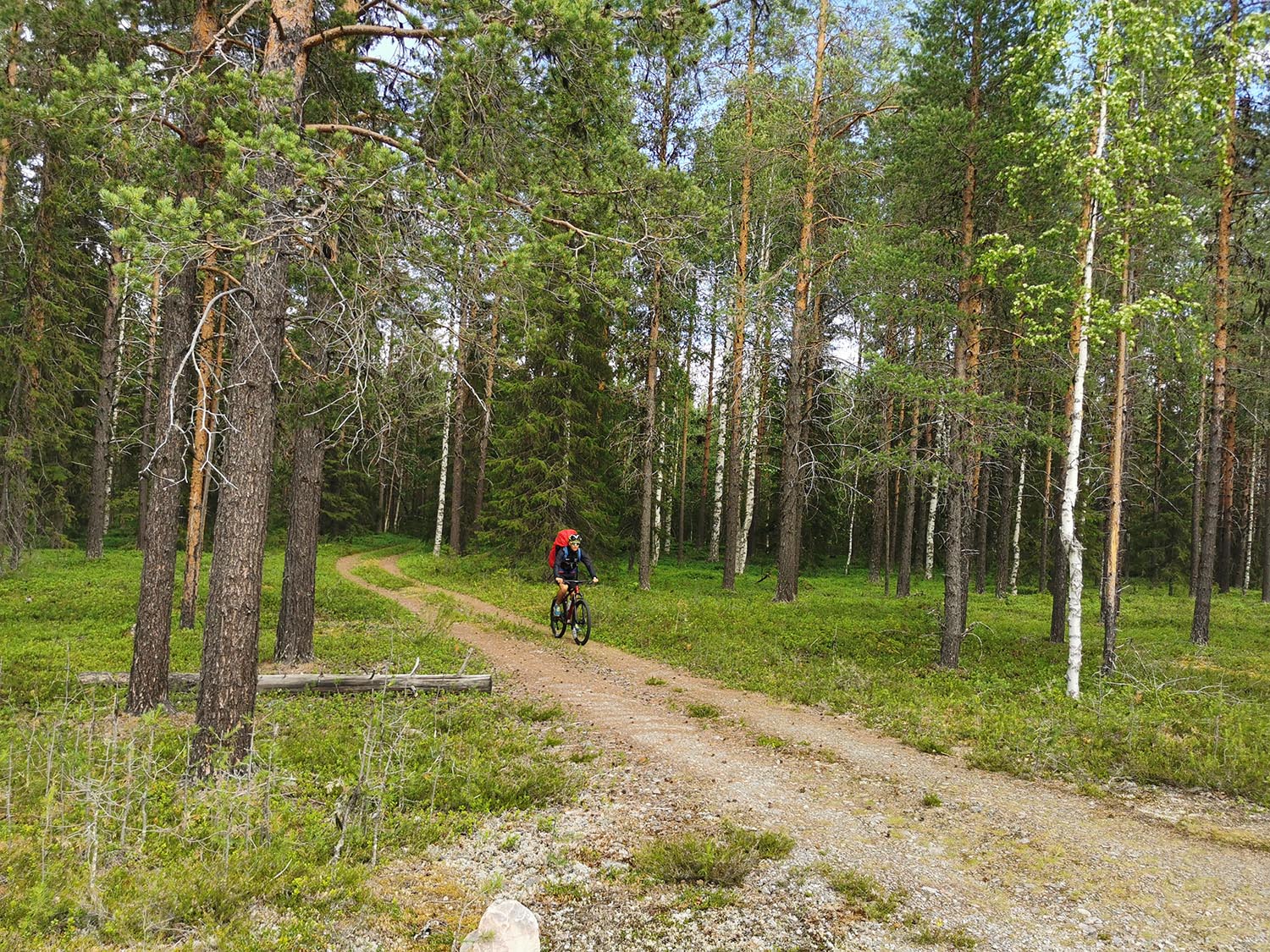 Vi sprang en bit efter en liten grusväg men där den tog slut fick vi lov att springa "off-road". Det var ganska jobbig skog att ta sig igenom, väldigt stenigt och en del myrland. Vi såg någon ren som vi inte fick med på bild och även lite andra fåglar. Vi sprang utan stig några kilometer tills vi kom till Piteälvsbron, där inlandsbanans tågräls och bilvägen delar på samma bro. Där tog vi någon bild, för att sedan fortsätta.