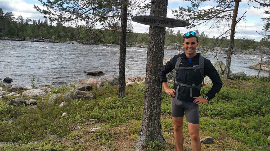 Snabbt gick vi upp och kokade gröt - för det behöver man innan långa träningspass - för att sedan snabbt packa ihop allt som kunde tänkas behövas. In med cyklarna, fjällryggsäckarna och löpryggsäckarna i bilen och sedan drog vi. Pappa lämnade av oss på södra sidan älven vid Ekopark-skylten vid "Stuor Giddon" där vårt äventyr startade.
