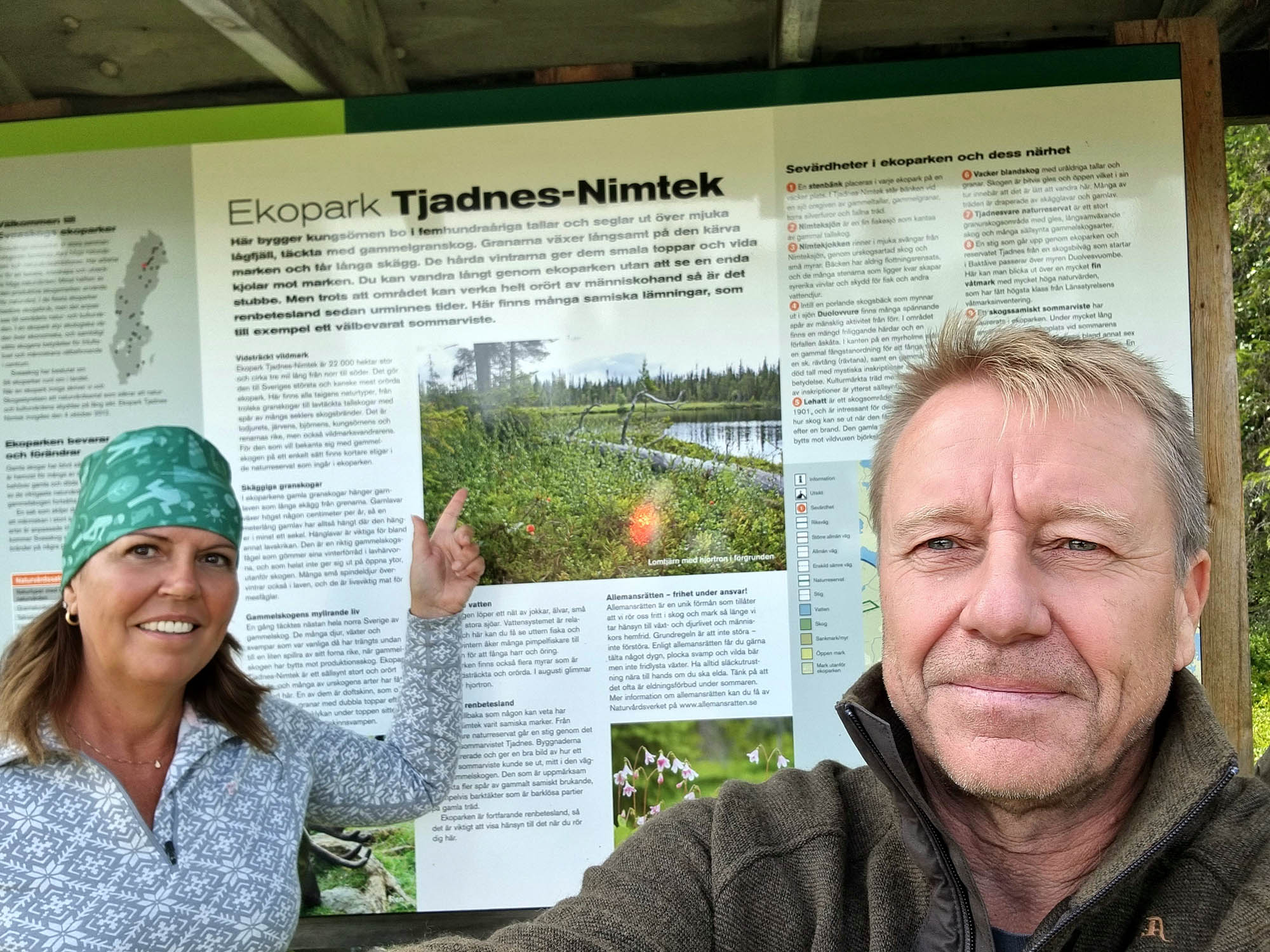 Följ Per och Helena Isaksson som vandrar och cyklar genom gammelskogen i Ekopark Tjadnes-Nimtek. Hittar de till ekoparksbänken?