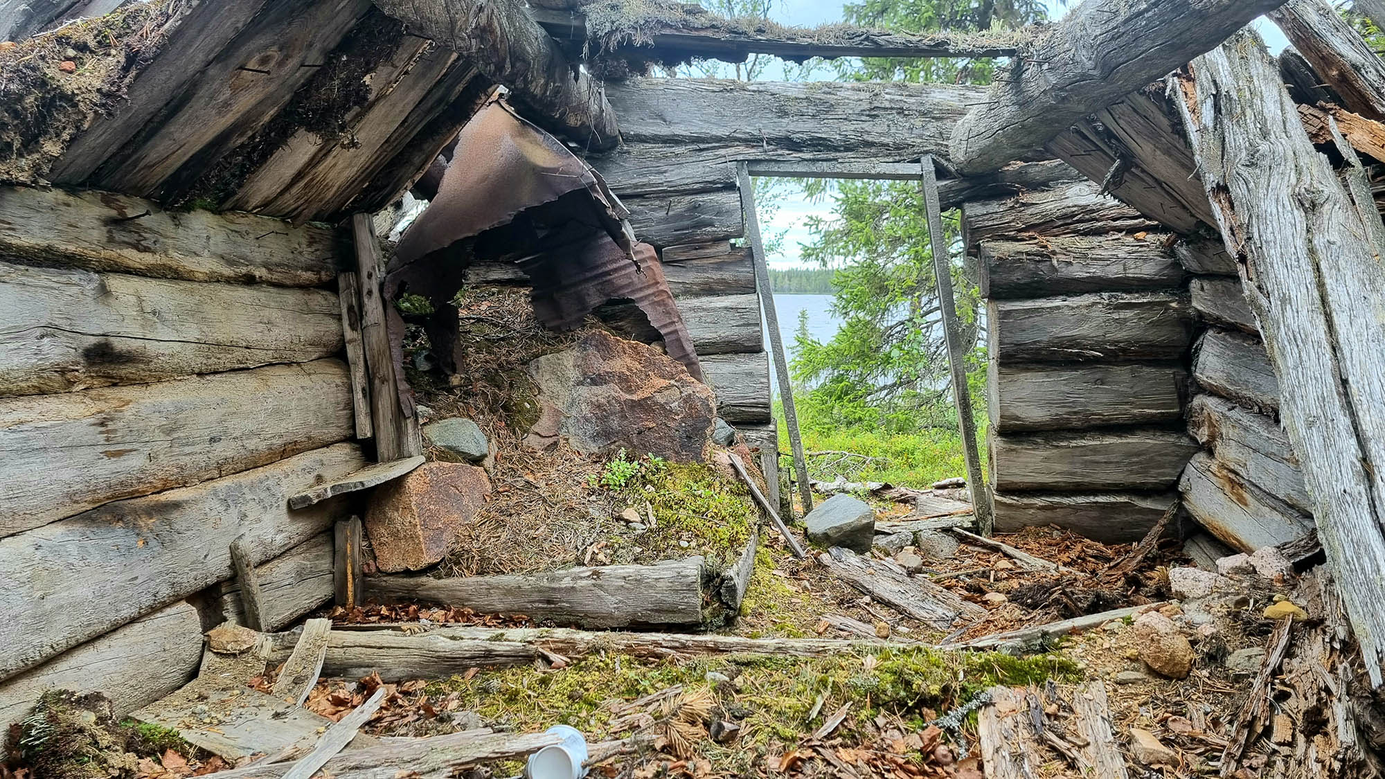 Här vid sjön hittar vi det första spåret av människor, förutom i början av sträckan där det fanns ungskog som var planterad. En liten, gammal stuga med en form av enklare eldstad där inne.