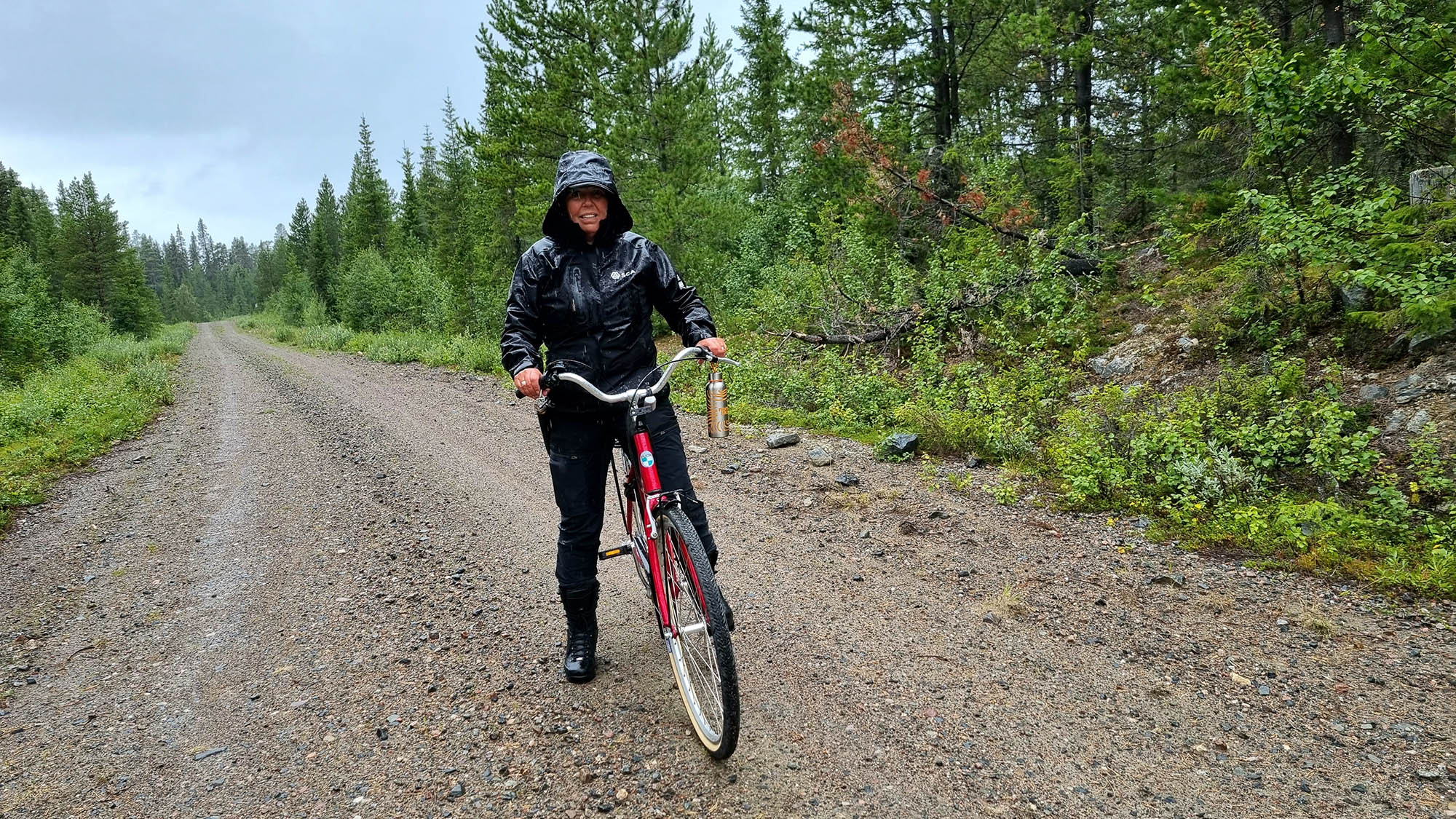 Nu är det bara 20 km kvar i regnet men det känns helt okej efter en härlig och tuff vandring i Nimteks urskog. Precis innan vi är framme vid bilen så får vi se en kungsörn sväva förbi, mäktigt. Här tar vårt äventyr slut. Lyckliga och trötta lastas cyklarna för hemfärd.