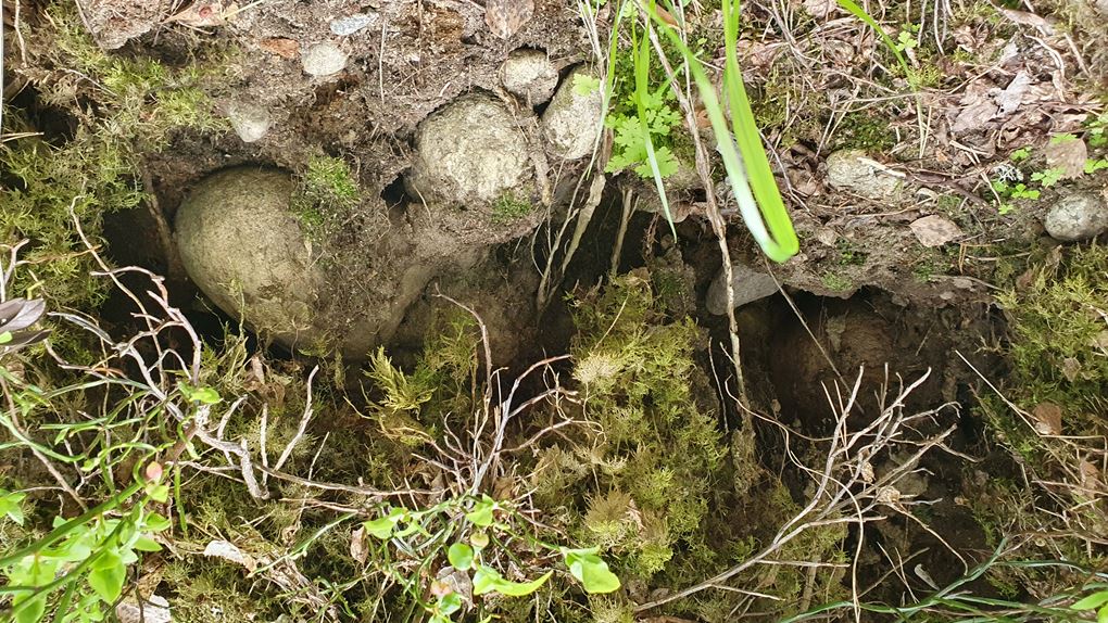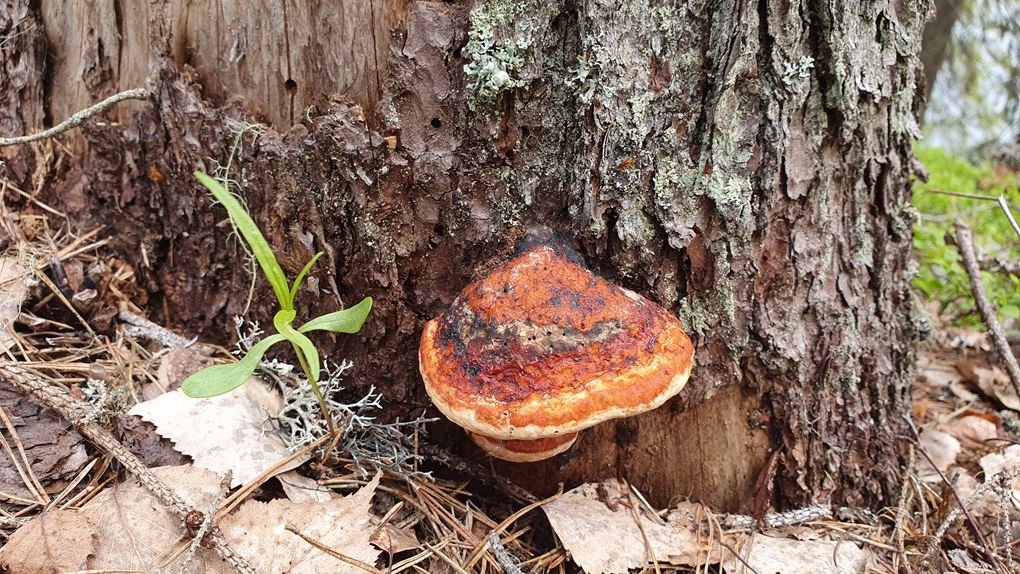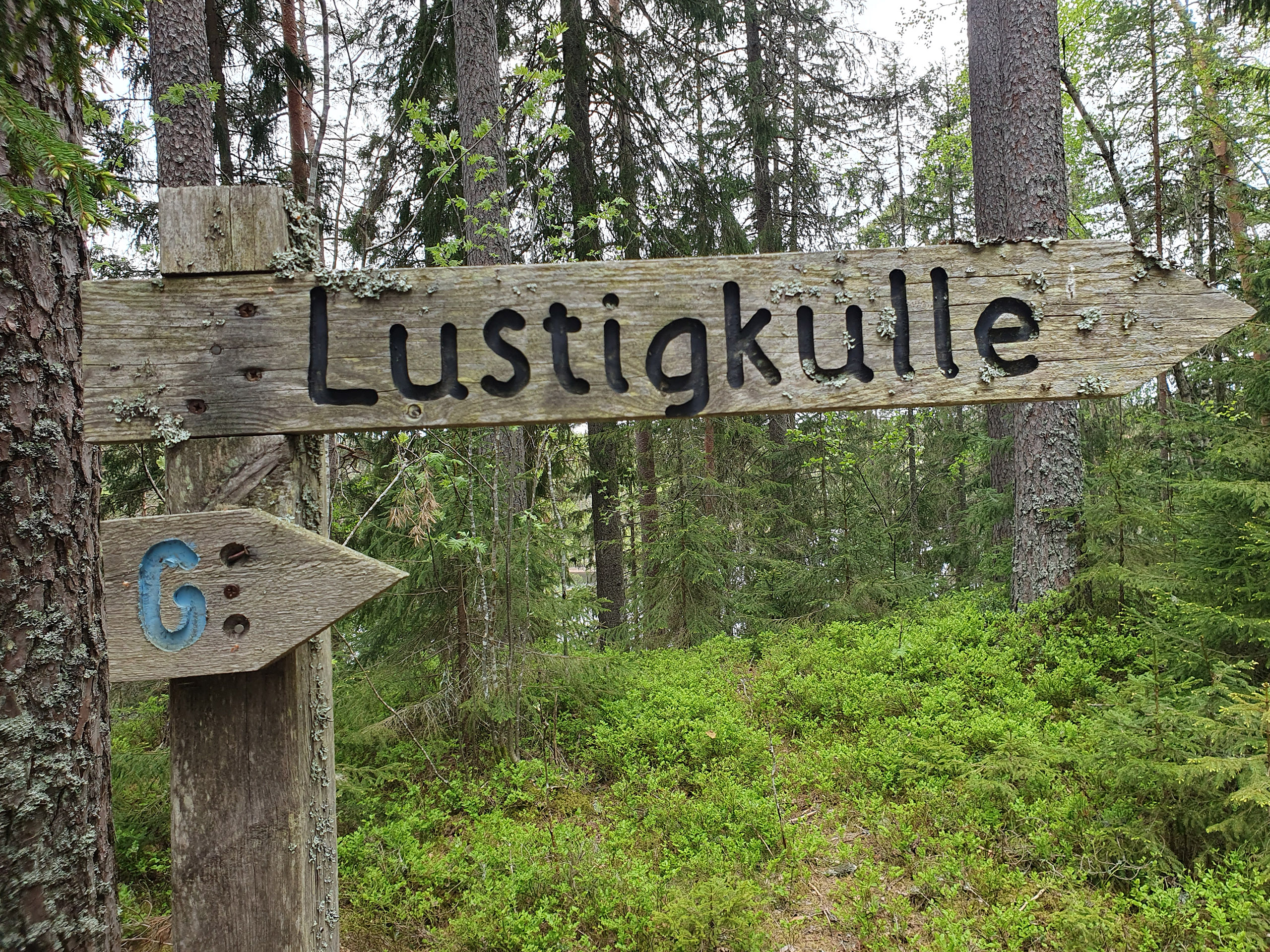 Åsryggen mellan sjöarna bjöd på fin utsikt och i en av rotvältorna kunde vi se hur bin byggt bo i den blottade sanden. När vi tagit oss ner till Dammtjärnsviken hade vi siktet inställt på Lustigkulle där vi förväntat oss en utblick men möttes av en igenväxt höjd. Inte mycket att se där.