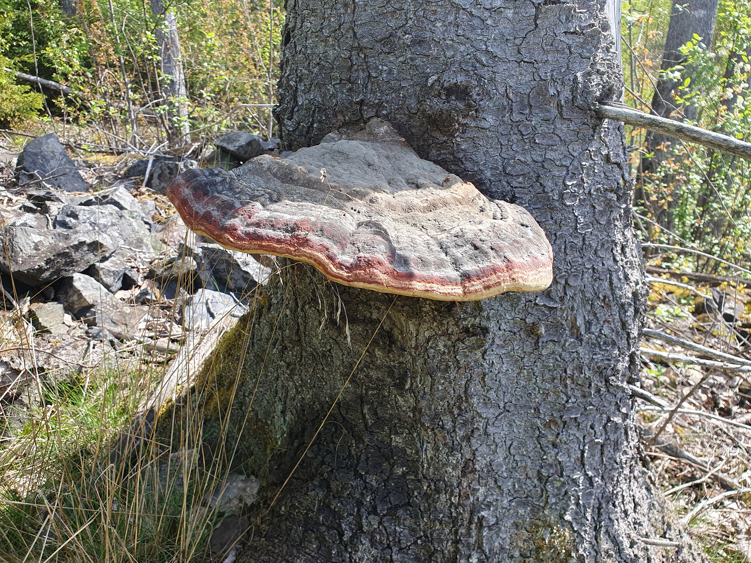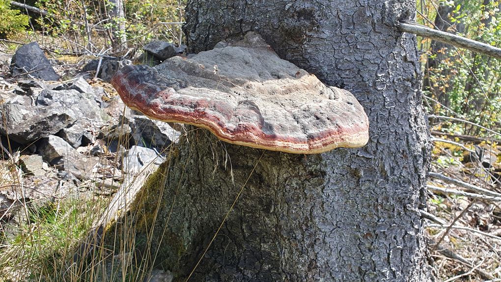 Startplatsen Rågåstjärn visade sig vara ett bra ställe att parkera bilen, samt välbesökt av sportfiskare. Vi startade längs Istidsleden/geologislingan mot Hundtjärnen. Vid Ljustjärn fortsatte vi upp på Rågåsen och valde stigen mellan Ljustjärnen och Fisklösen. Här fick vi klättra över några omkullfallna träd och kunde observera flera som vajade betänkligt i vinden.