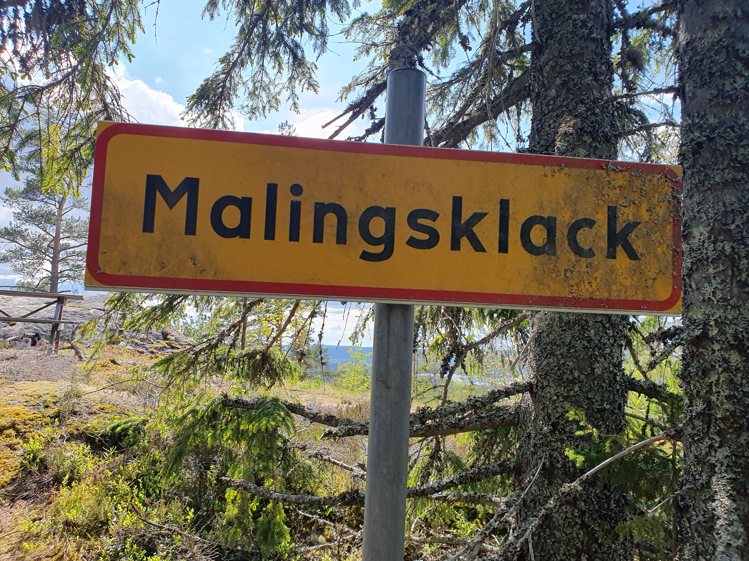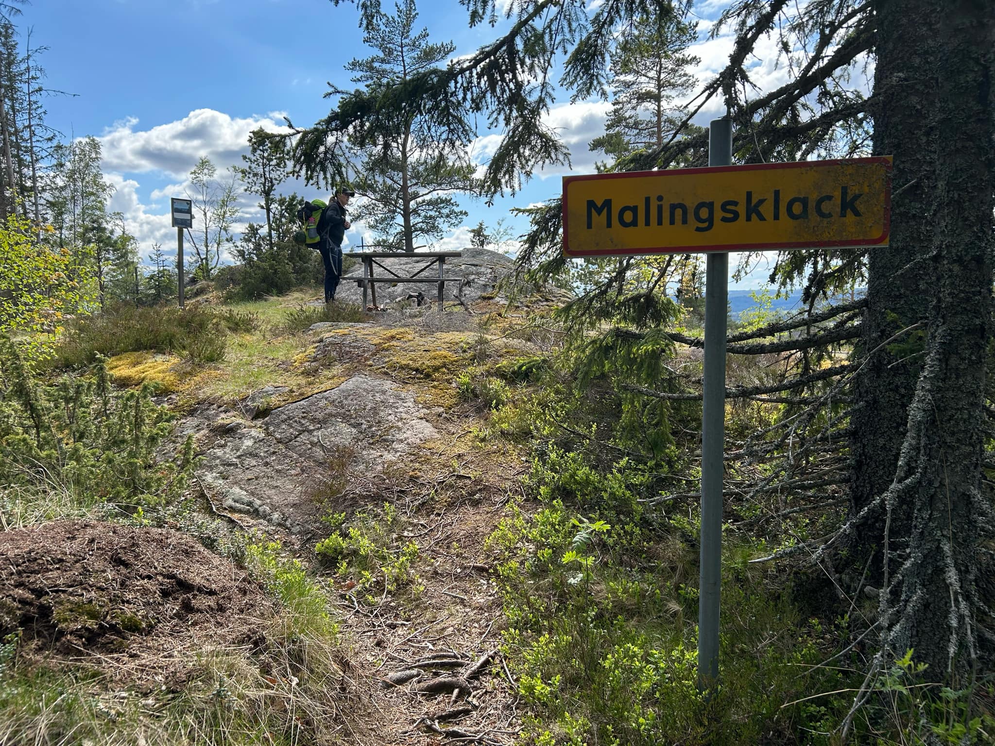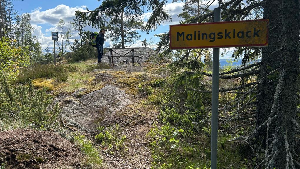 Vädret var varmt och soligt och till vår glädje såg vi på kartan att det skulle finnas en kallkälla på vägen mot Södra Bisen. Trots idogt sökande lyckades vi inte lokalisera något källvatten. Kanske hade källan torkat ut? Efter den krävande vandringen uppför Trollberget kändes det lätt att ta sig till utsiktsplatsen vid Malingsklack. Här tog vi en paus och njöt av utsikten.