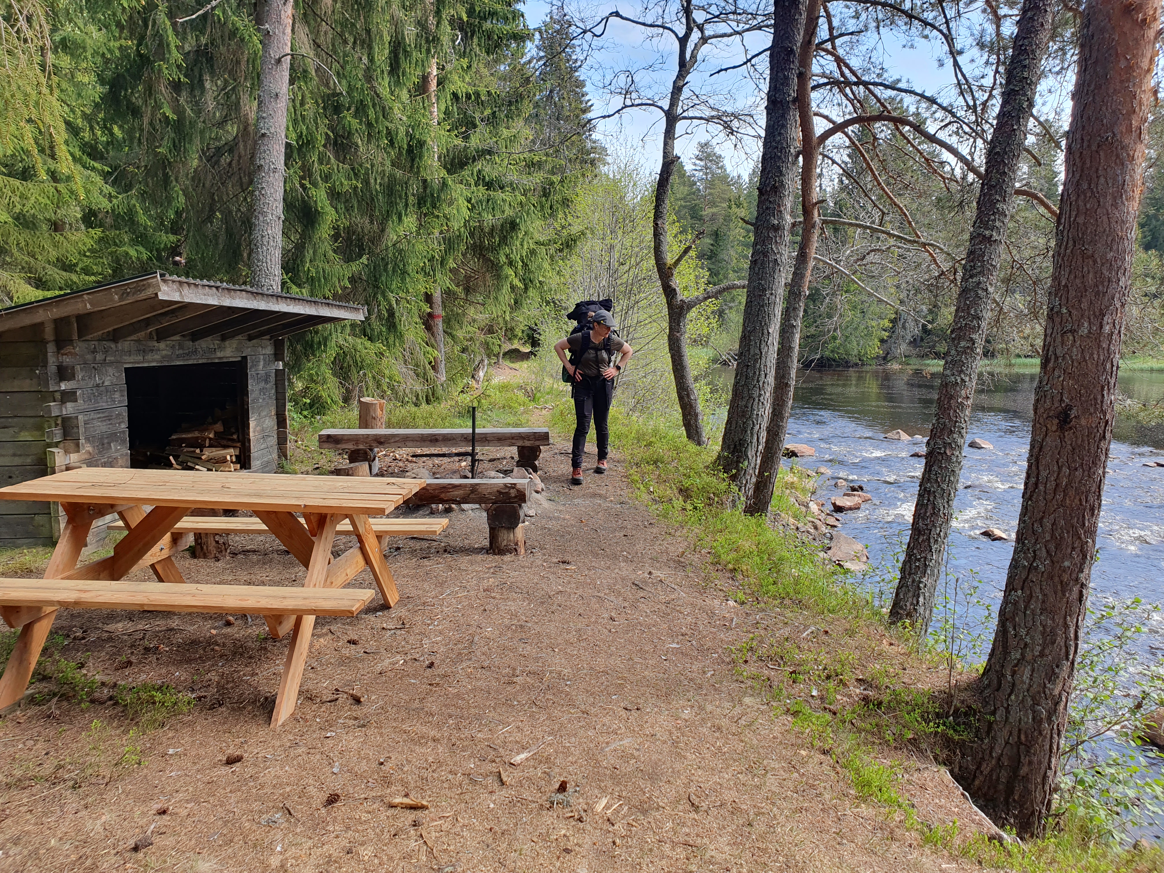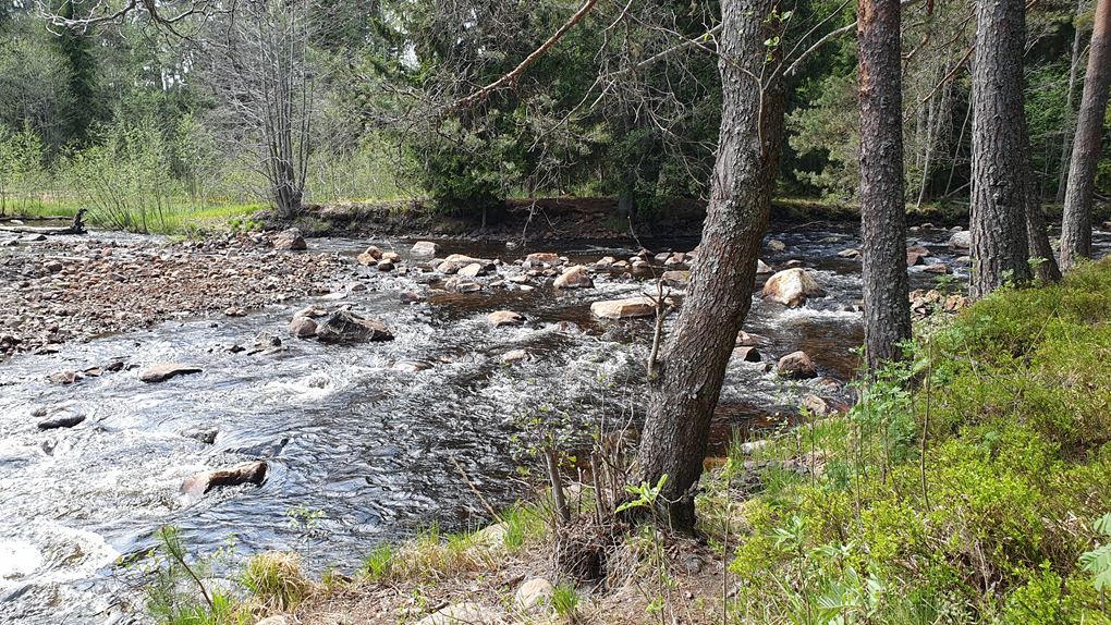 Helt enligt plan kom vi så ner till väg 233. Efter en titt på kartan bestämde vi oss för att testa Romboleden längs med Hedströmmen. Vid Övre Borgfors valde vi att gå tillbaka till väg 233 för att spara lite tid.