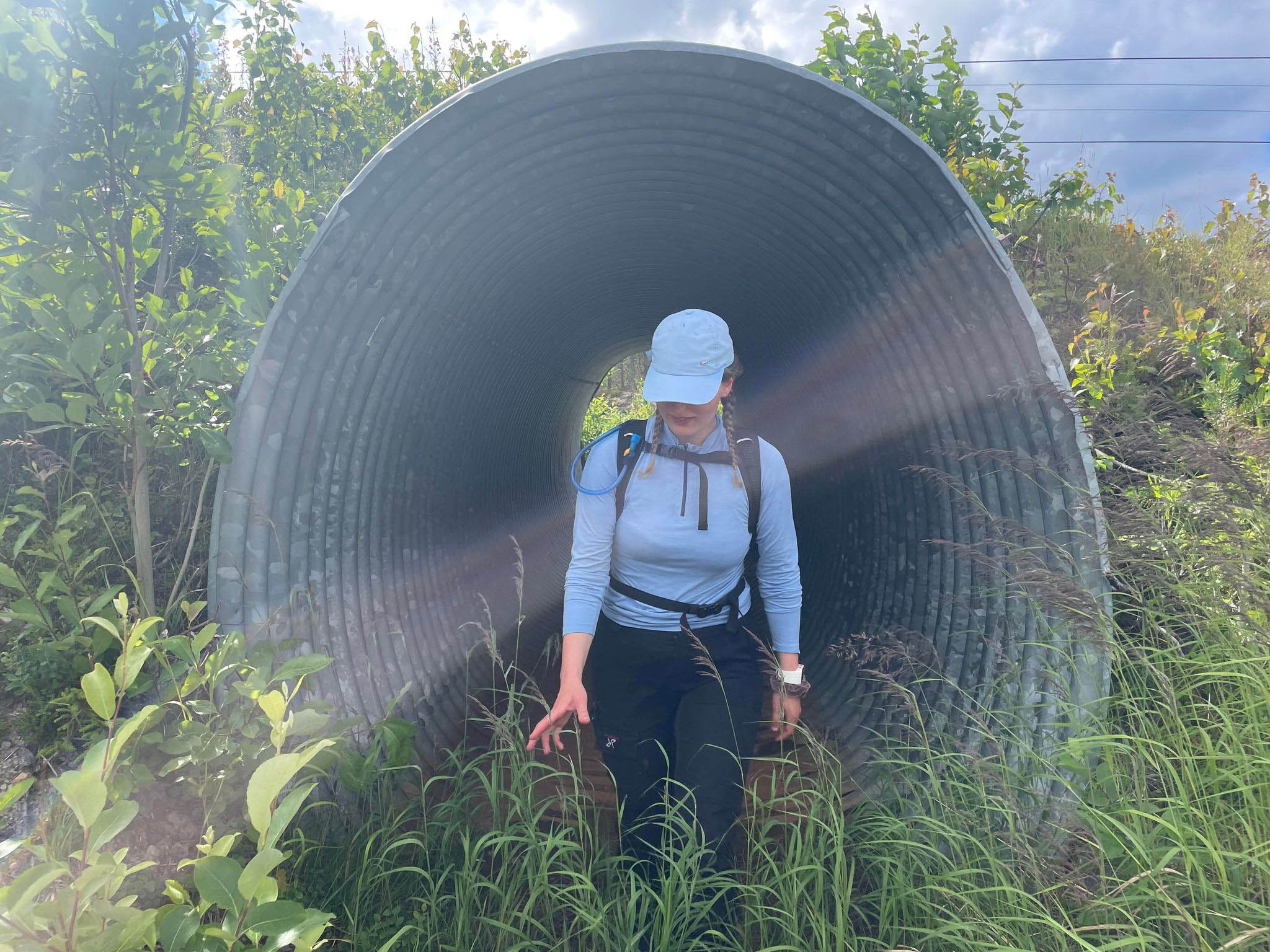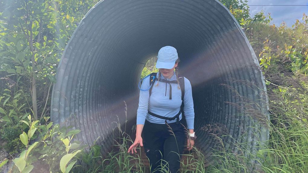 Det gamla gruvhålet mättes till 2,5 meter djupt. Var försiktig och gå inte för nära kanten på gruvhålen när du besöker ekoparken!