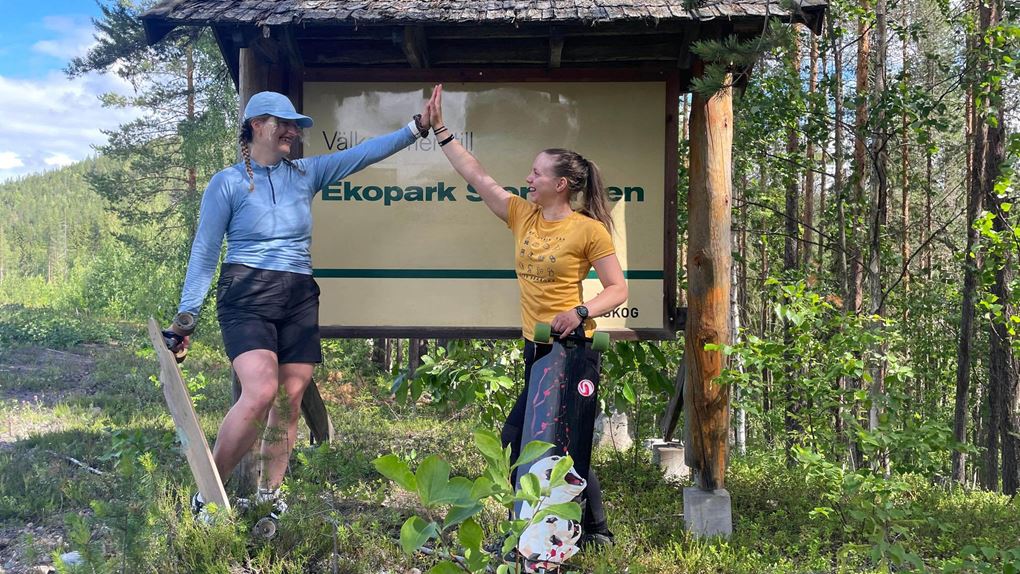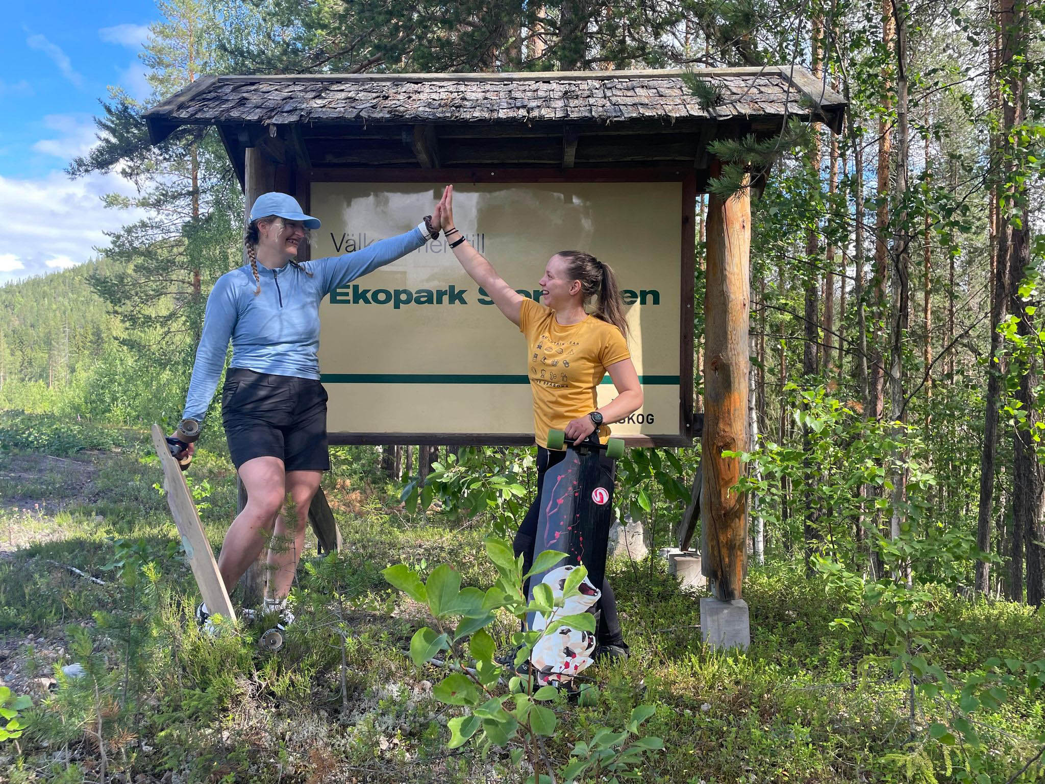 Följ friluftsvännerna Veronica Ström och Eloise Fredriksson som tar sig an Ekopark Storklinten med cykel, paddleboard och longboard.