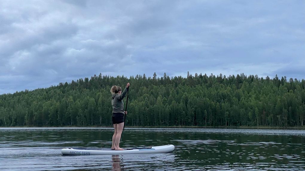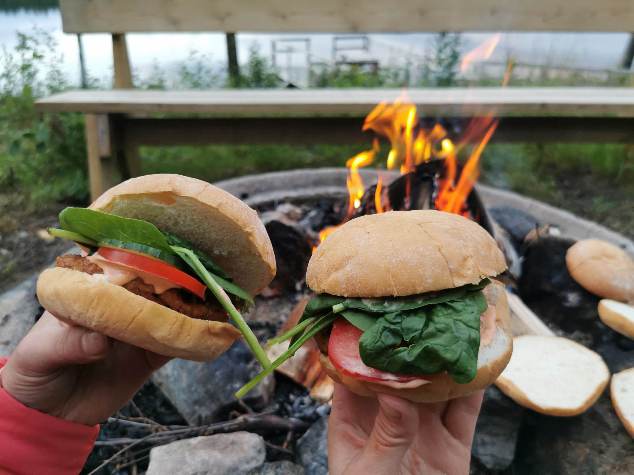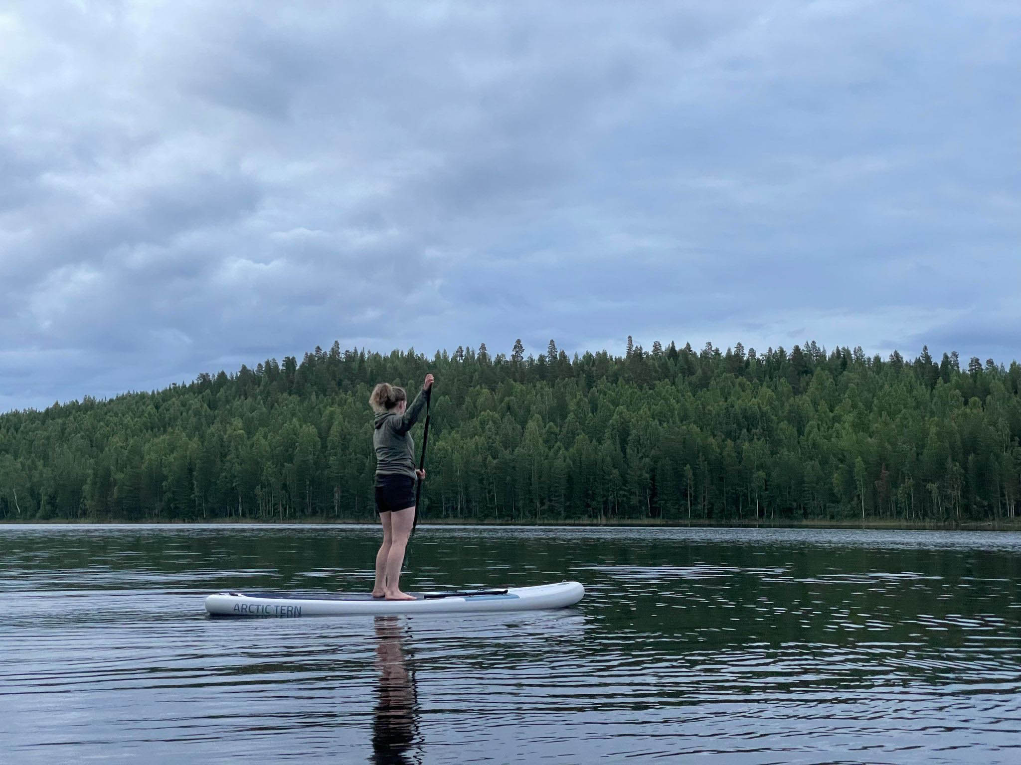 Klockan 21:00 var vi framme vid vindskyddet och kvällen bestod av vegoburgare, härligt häng och en del paddlande ute på Hundsjön. Vi hade tagit med oss våra paddleboards som vi blåste upp och paddlade runt med på sjön. Perfekt aktivitet då sjön erbjöd många intressanta vyer.