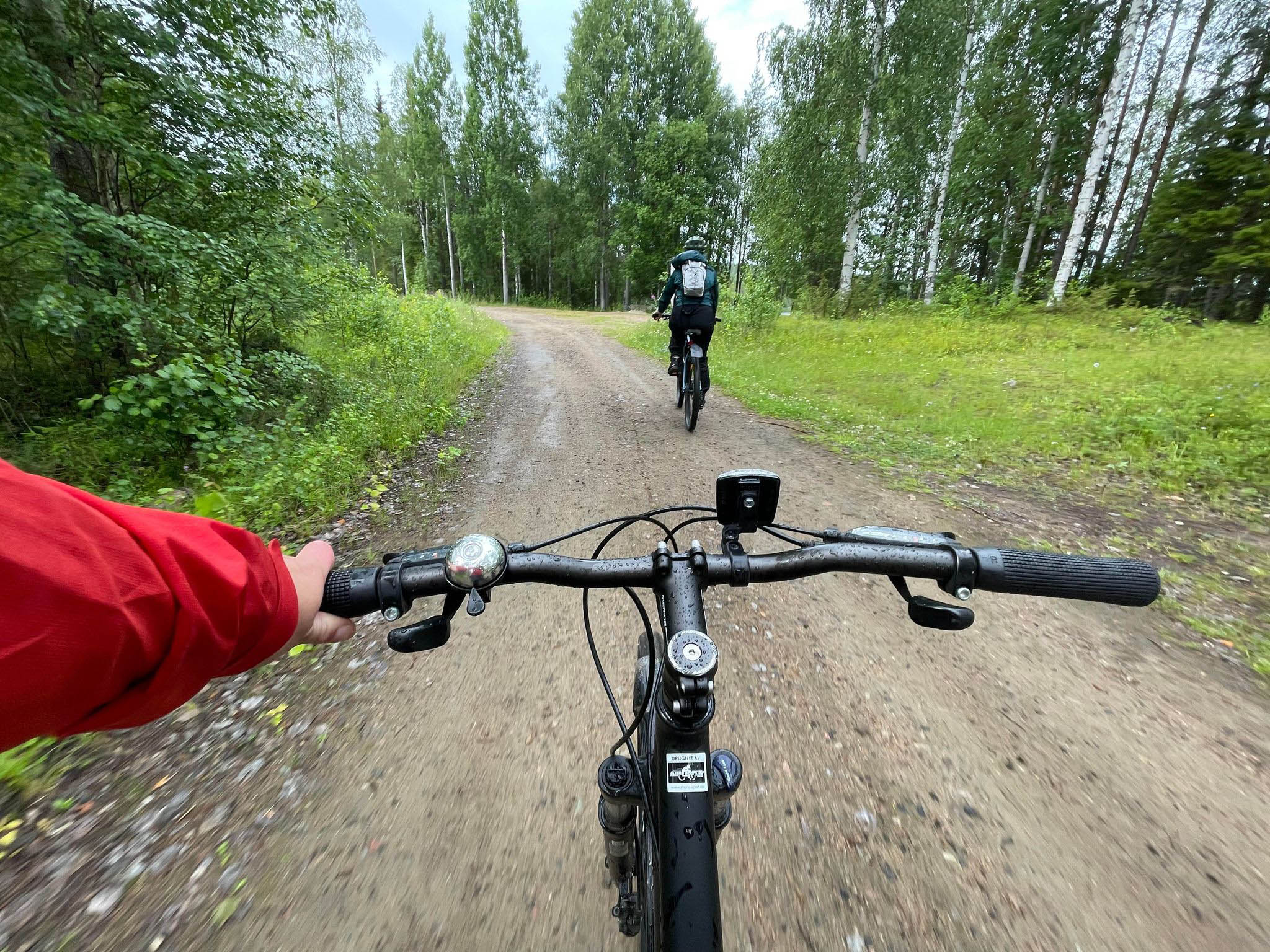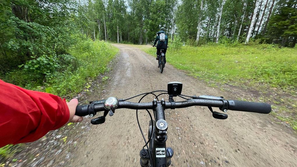 Dagen började med att förbereda packningen, pumpa cyklarna, handla mat och styra våra två bilar mot vår tilldelade Ekopark Storklinten. Väl på plats lämnade vi en av bilarna på Storklintens parkering och körde den andra till Hundsjön som även skulle komma att bli vår utgångsposition under äventyret. Det regnade väldigt mycket när vi kom fram och på grund av vädret valde vi att byta håll på den planerade rutten.