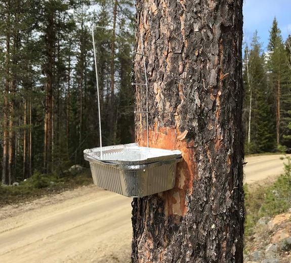 Små hål i barken vittnar om hackspettar som letat mat. Det betyder att det finns viktiga arter i träden som ger höga naturvärden.