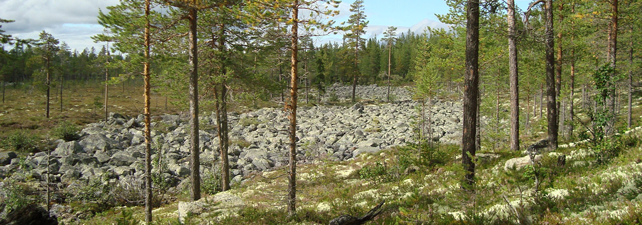 Största delen av ekoparken är karg och stenig, men här och där byts den magra tallskogen mot frodig granskog. Det beror på stråk av grönsten och kalk i berggrunden, som gör marken bördig. Här växer tjocka mossmattor med orkidéer som skogsfru och guckusko, och sällsynta svampar som violettrandad spindling och svartfjällig musseron.