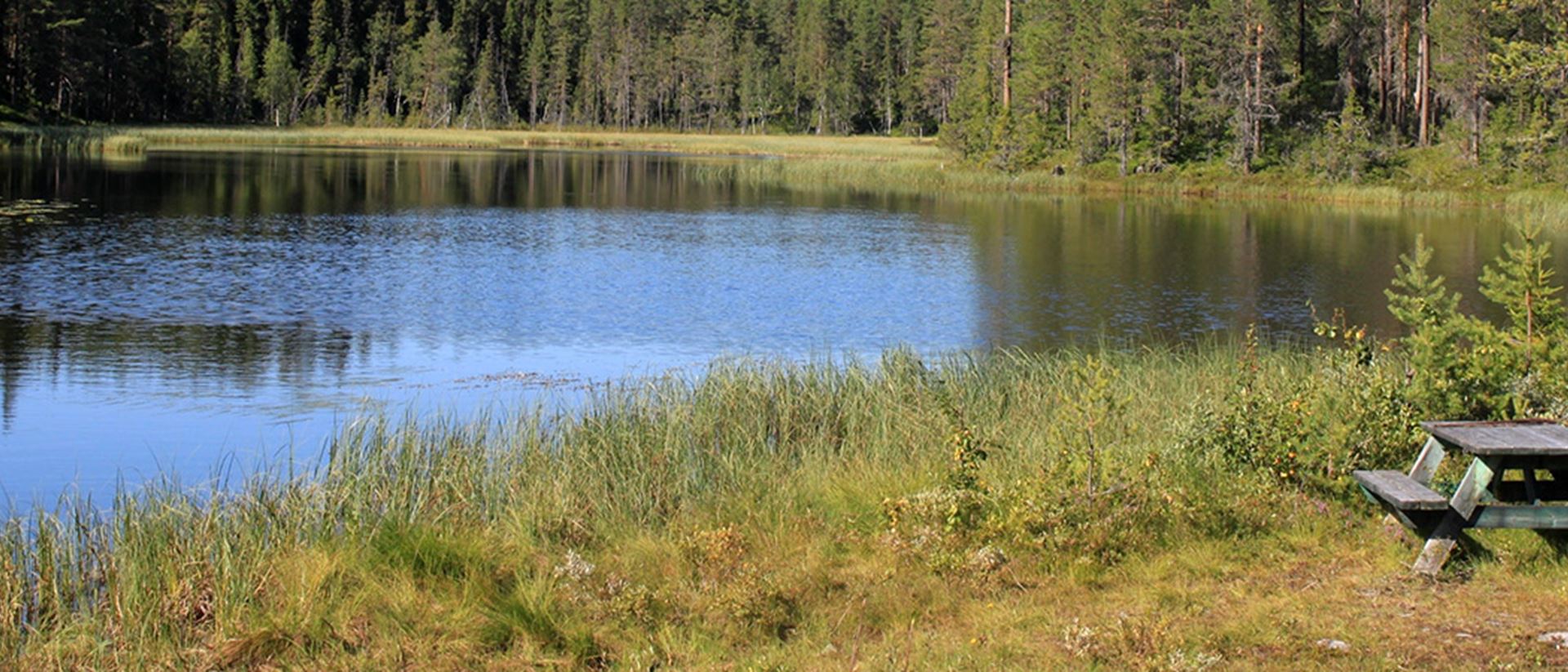 Vandra genom sammanhängande gammelskogar och över orörda hjortronmyrar. Vid sjöarna och på bergstopparna öppnar sig den stora stillheten.