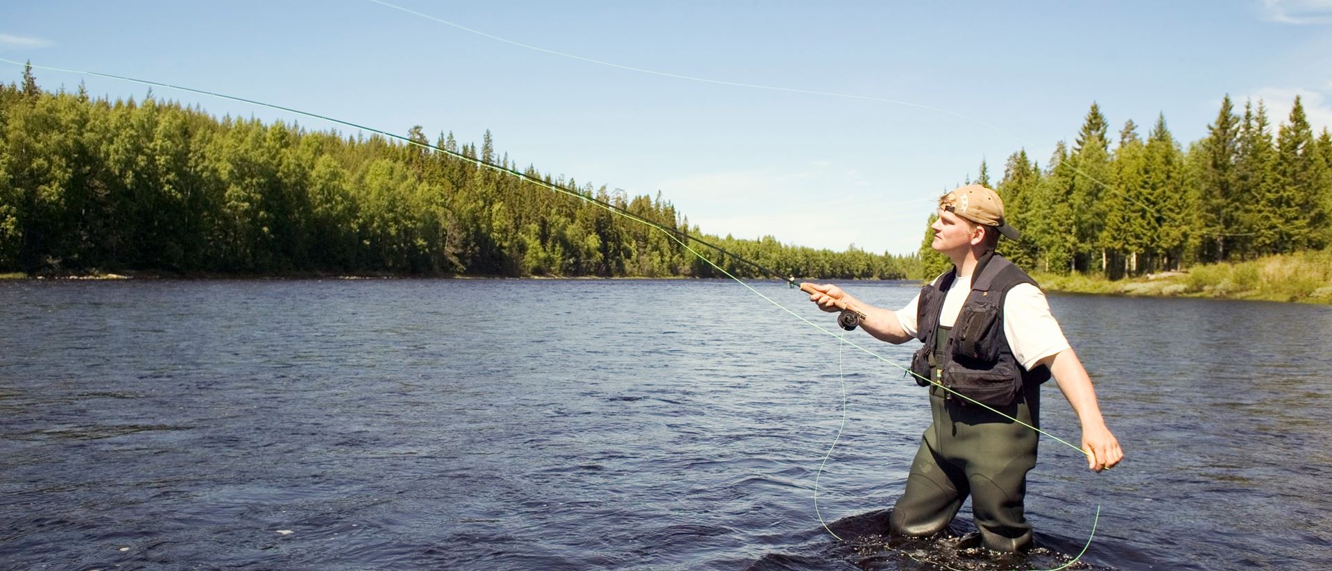 Muonioälven i norra Norrbotten gränsar till Finland och är det nordligaste vattnet för Sveaskogs fiskekort. Hit kommer fiskare som snabbt vill få napp, eftersom det finns gott om huggvillig harr.